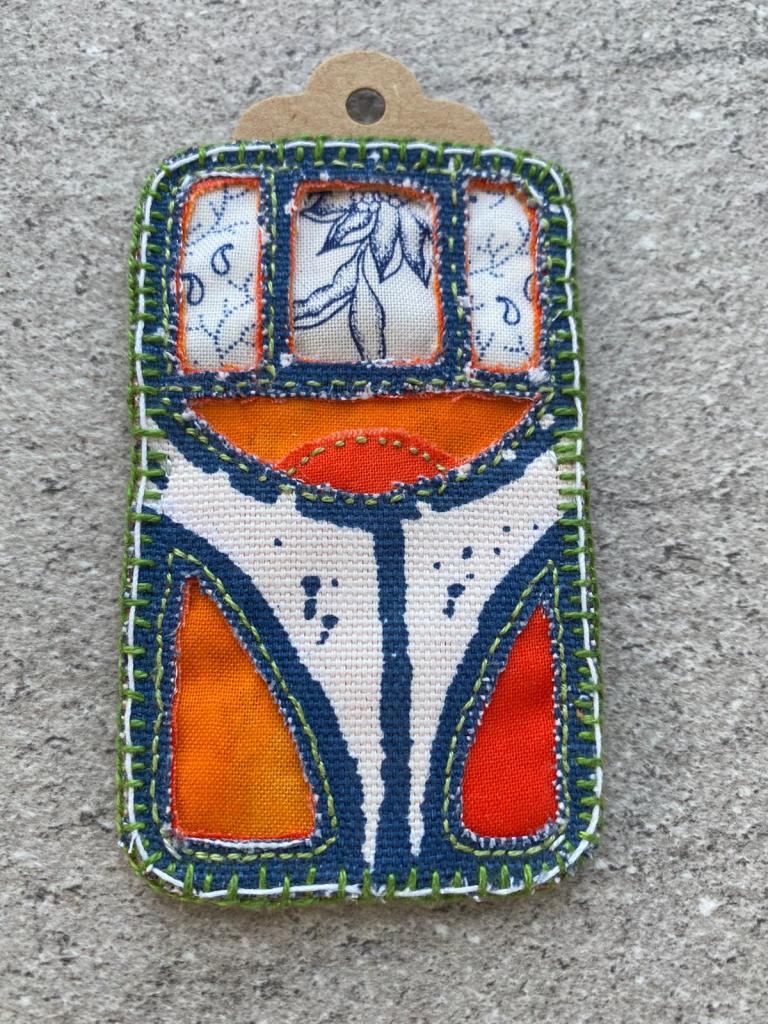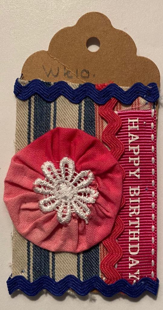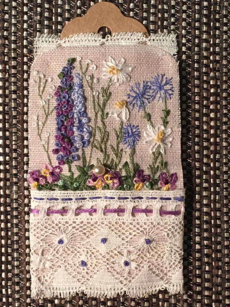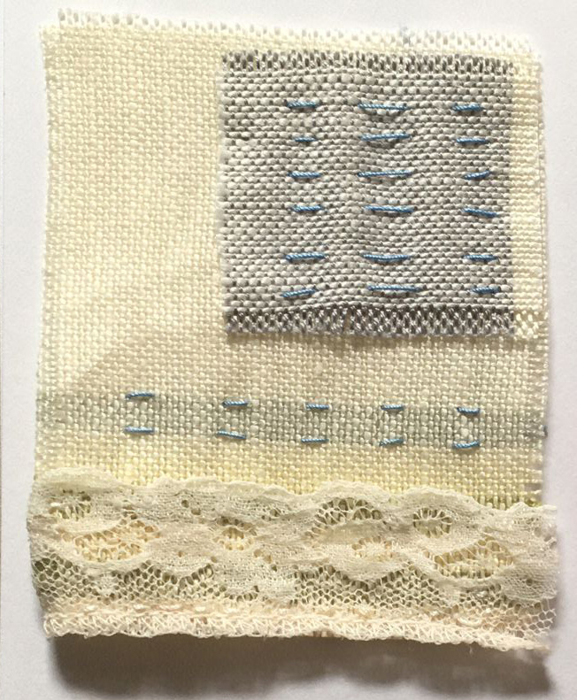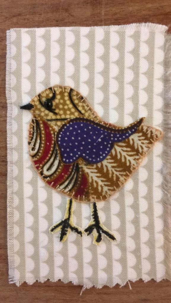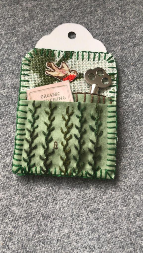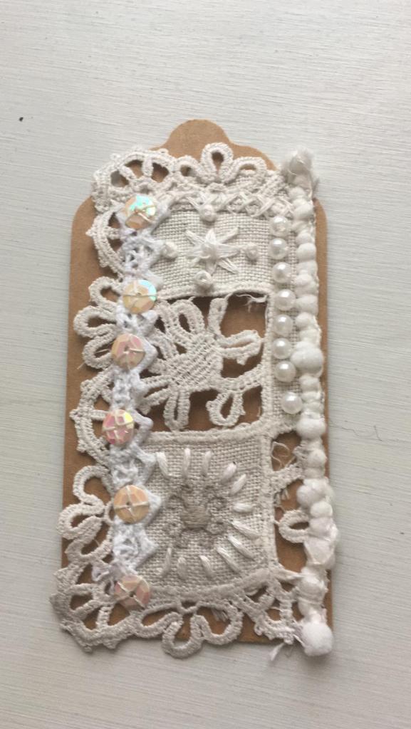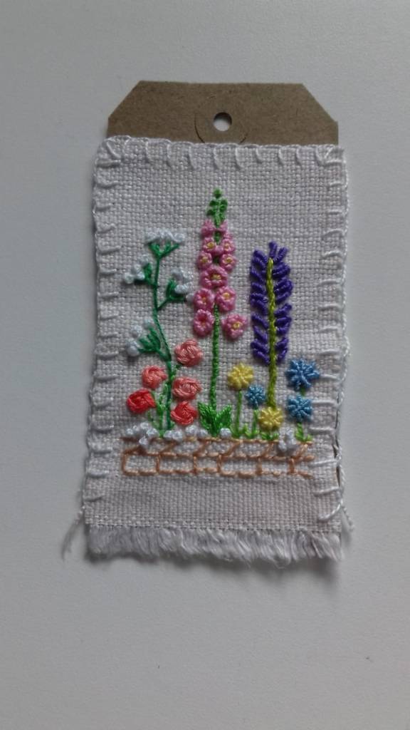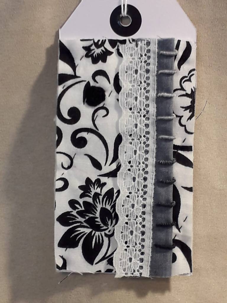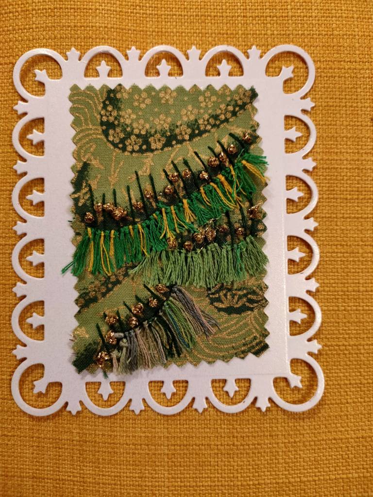 Our 2021 project was based on a challenge set by textile artist Anne Brooke, Sue V coordinated the project for our group. We created a series of mini stitched pieces, one a week for 52 weeks, each with a theme given by Anne Brooke which we attached to a luggage label or similar with the date and a memory of that week written on the reverse of the label.