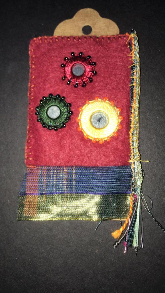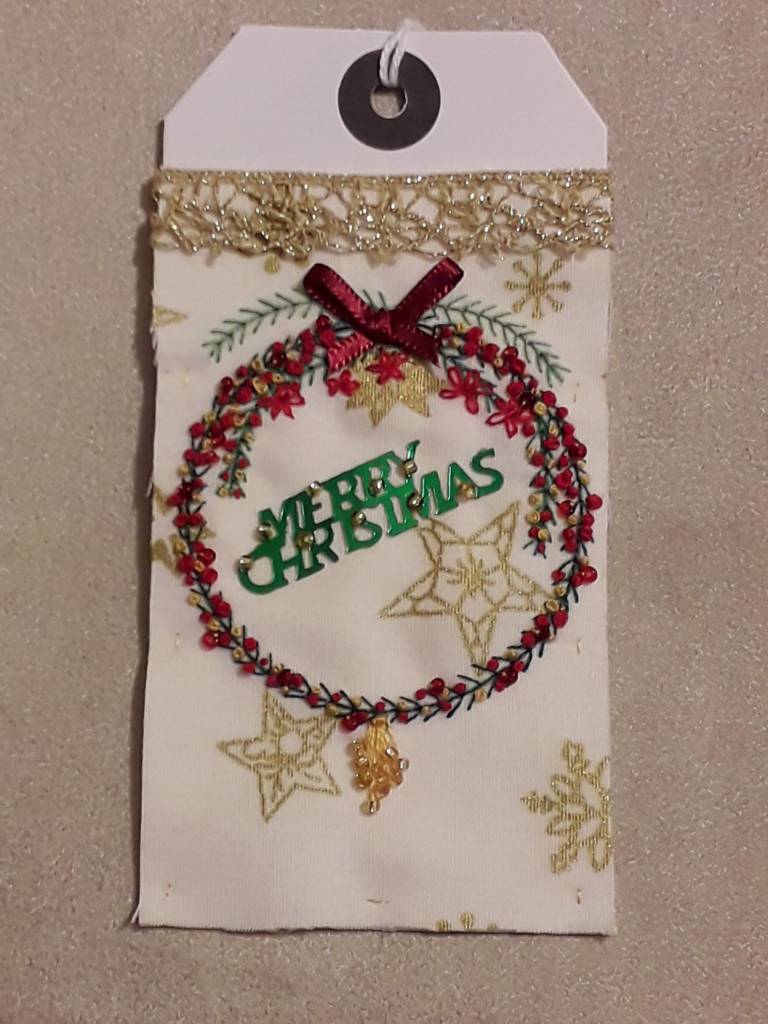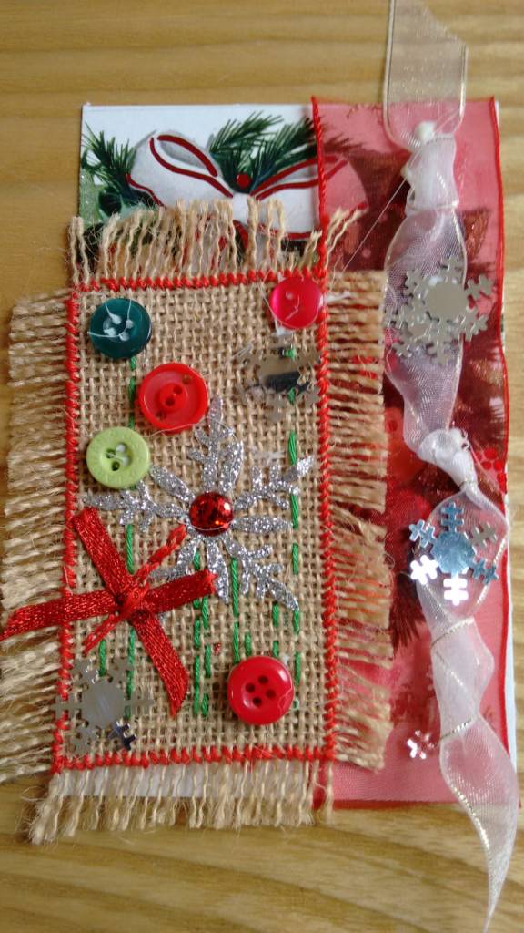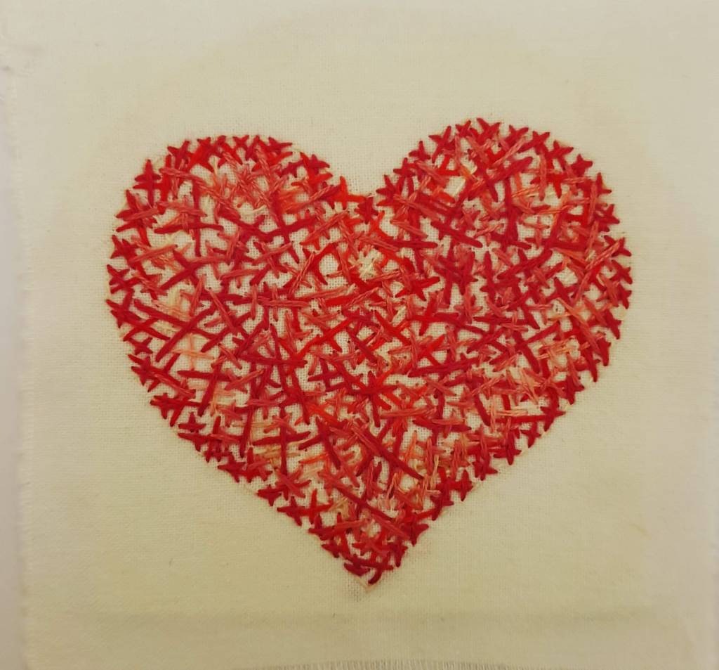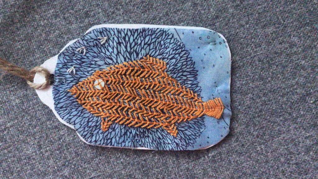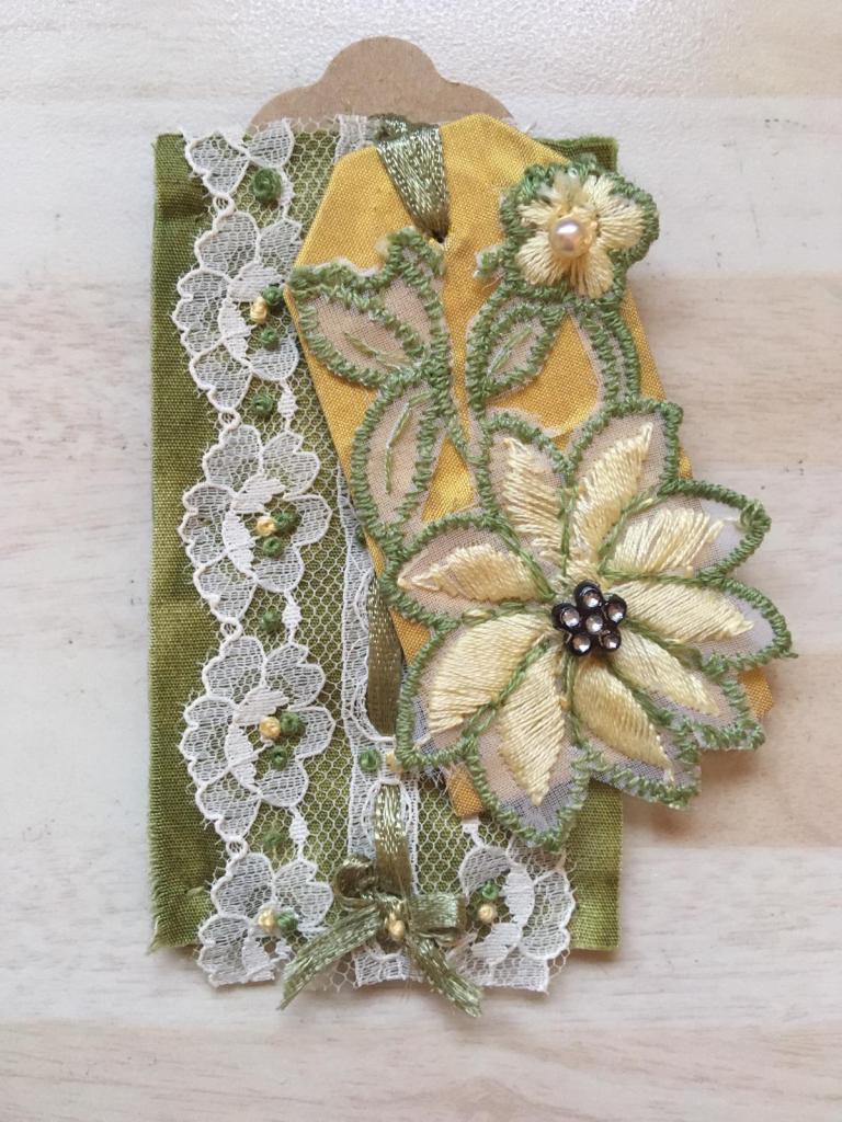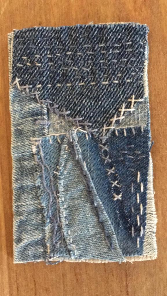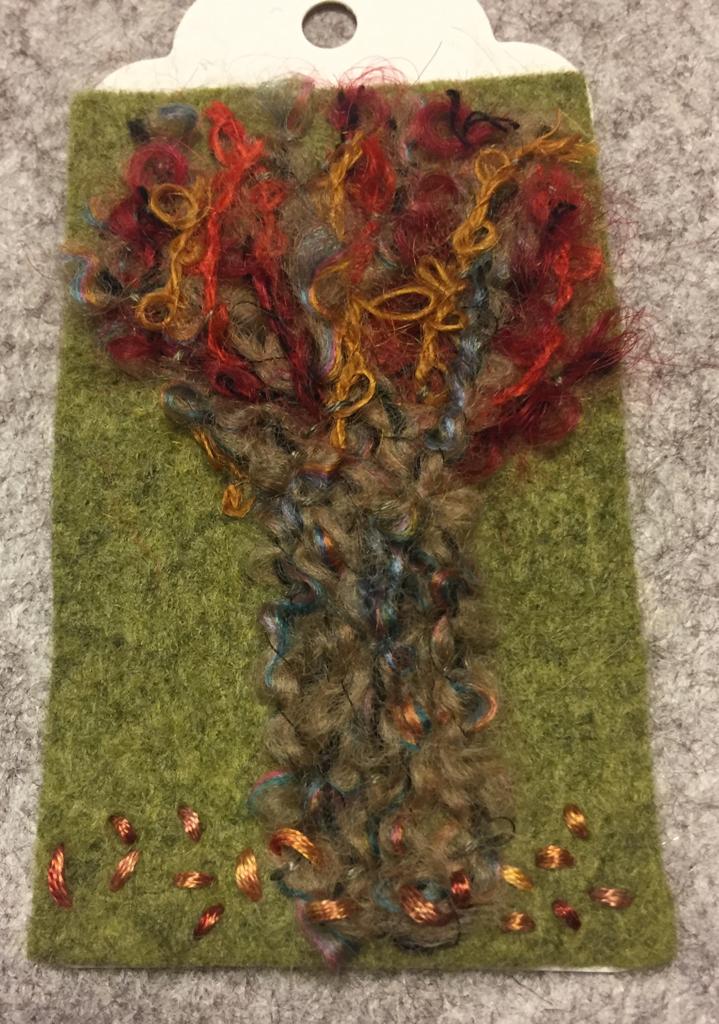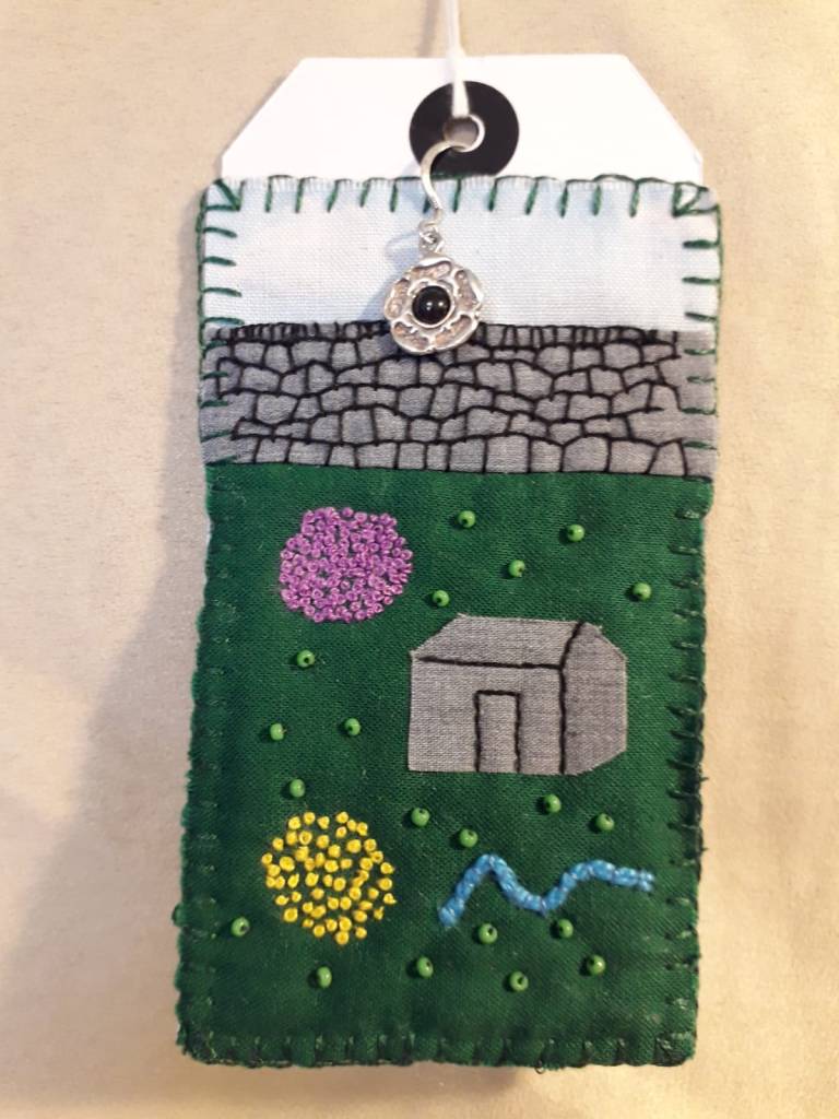 Our 2021 project was based on a challenge set by textile artist Anne Brooke, Sue V coordinated the project for our group. We created a series of mini stitched pieces, one a week for 52 weeks, each with a theme given by Anne Brooke which we attached to a luggage label or similar with the date and a memory of that week written on the reverse of the label.