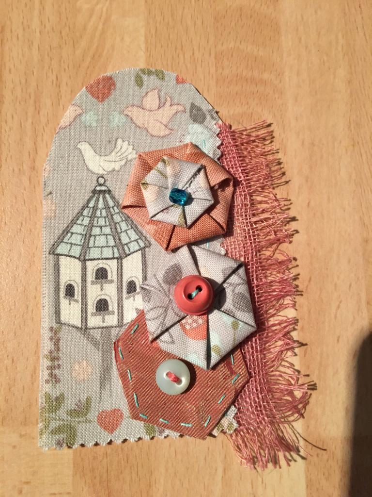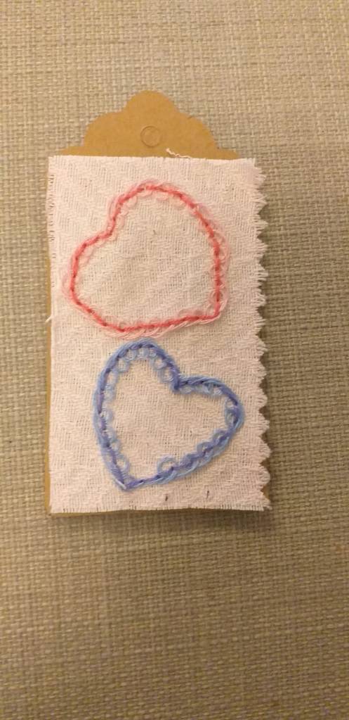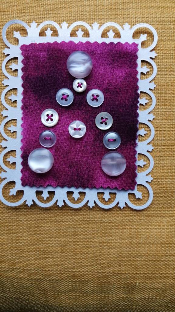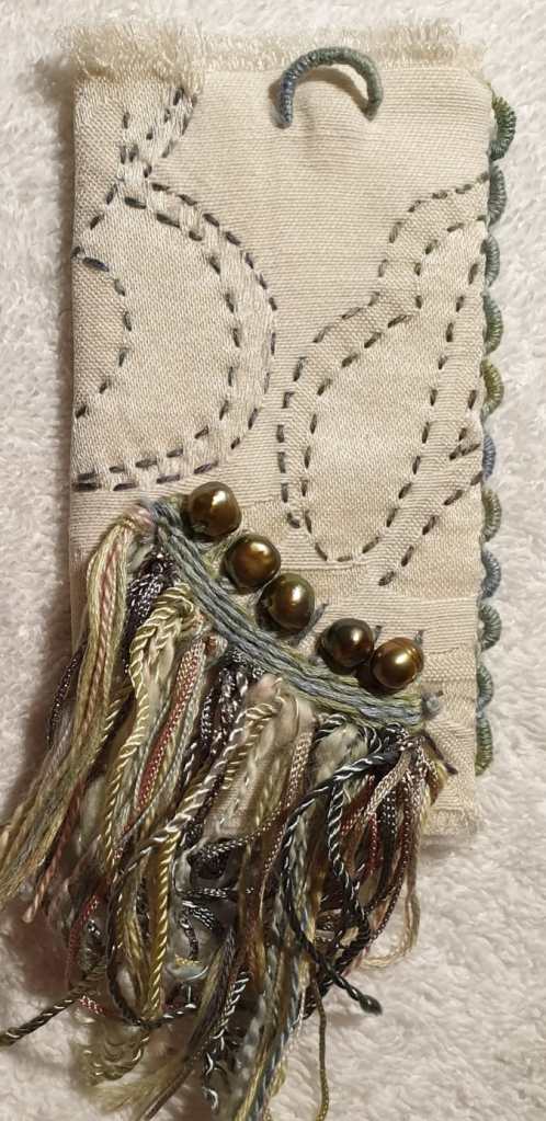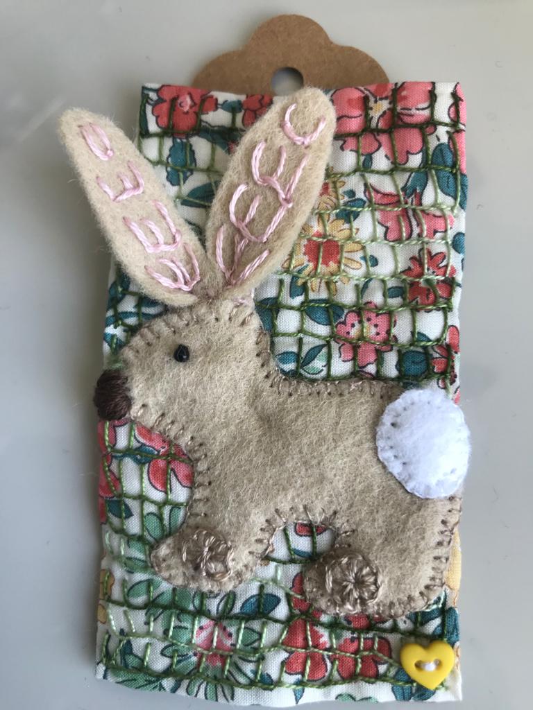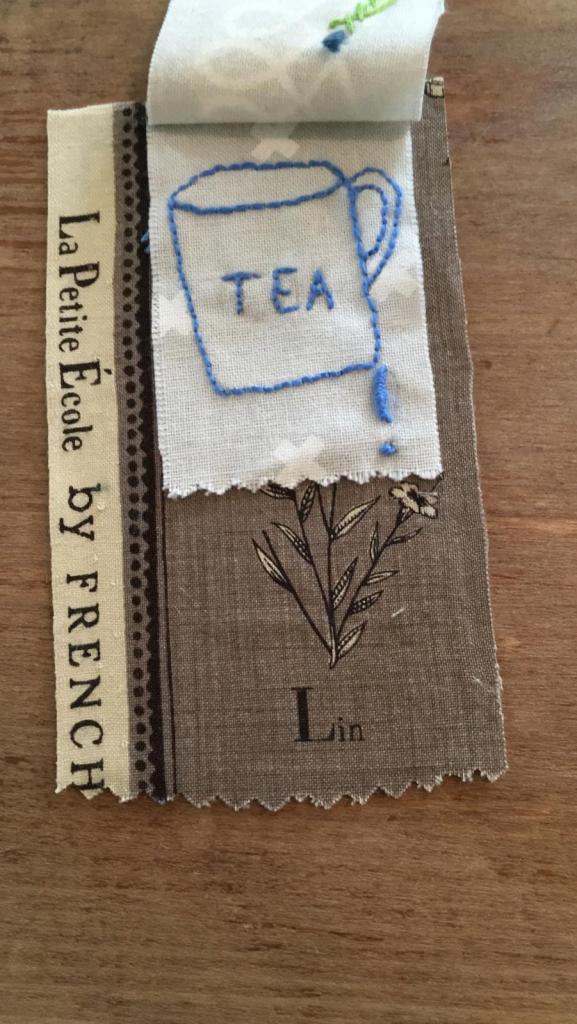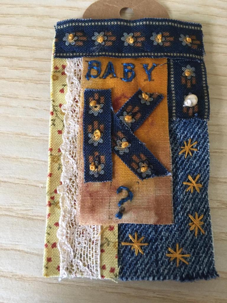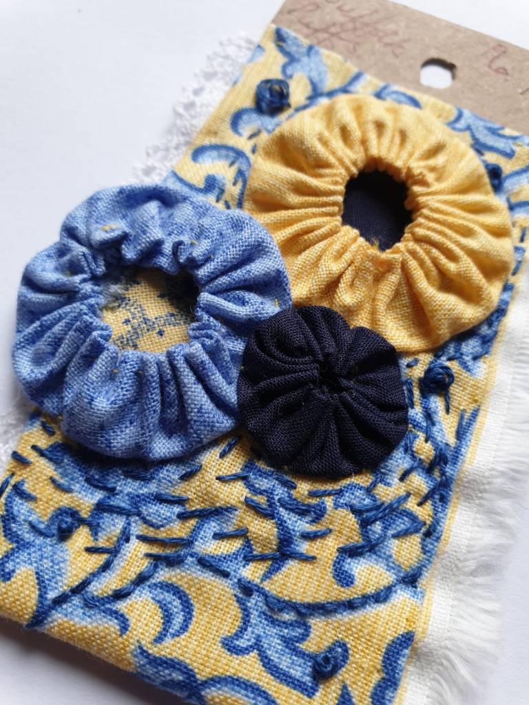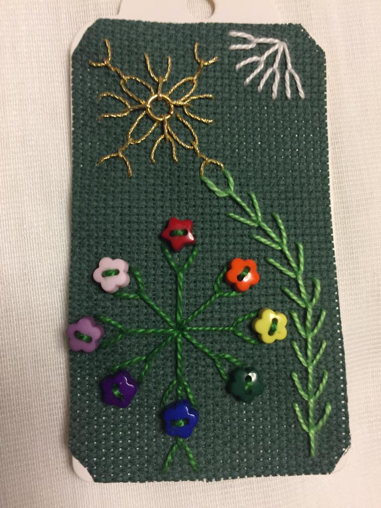 Our 2021 project was based on a challenge set by textile artist Anne Brooke, Sue V coordinated the project for our group. We created a series of mini stitched pieces, one a week for 52 weeks, each with a theme given by Anne Brooke which we attached to a luggage label or similar with the date and a memory of that week written on the reverse of the label.