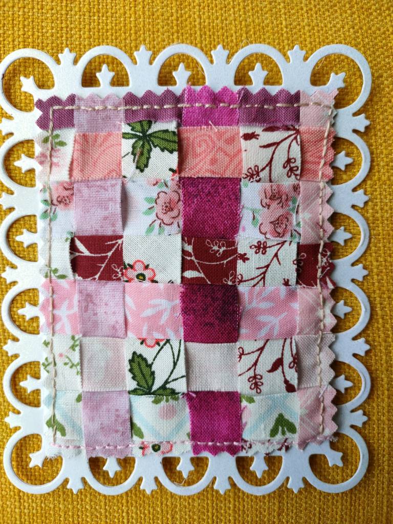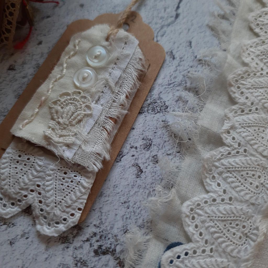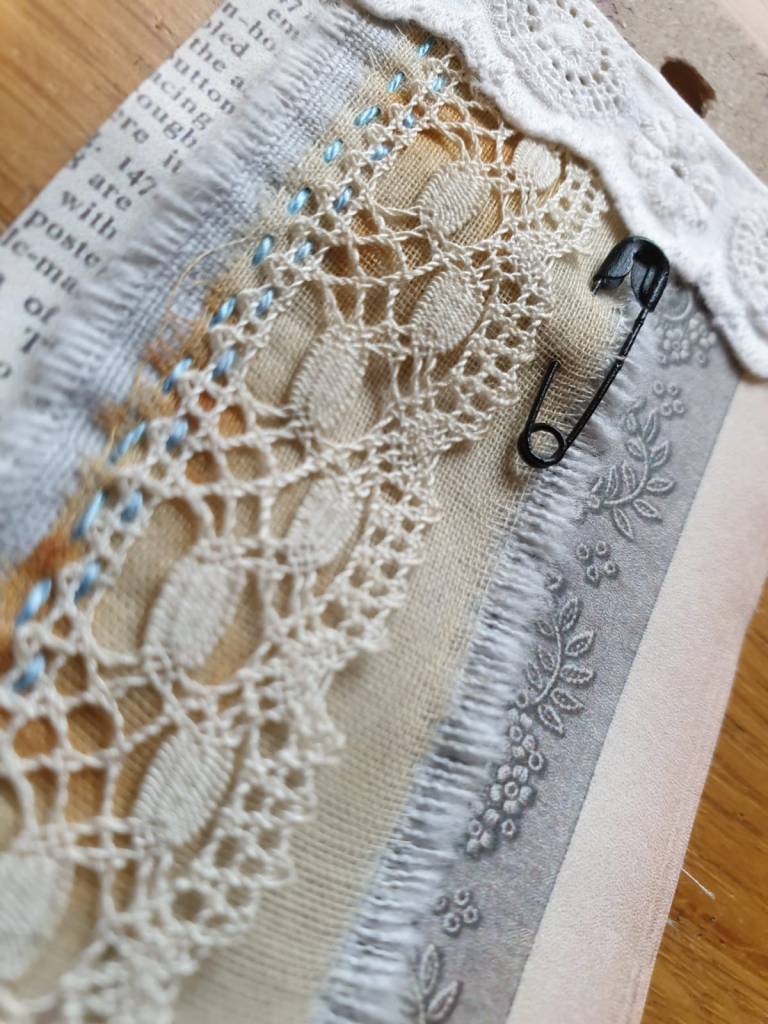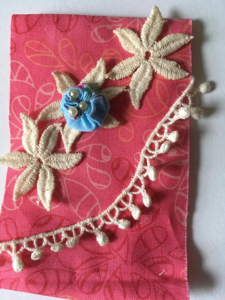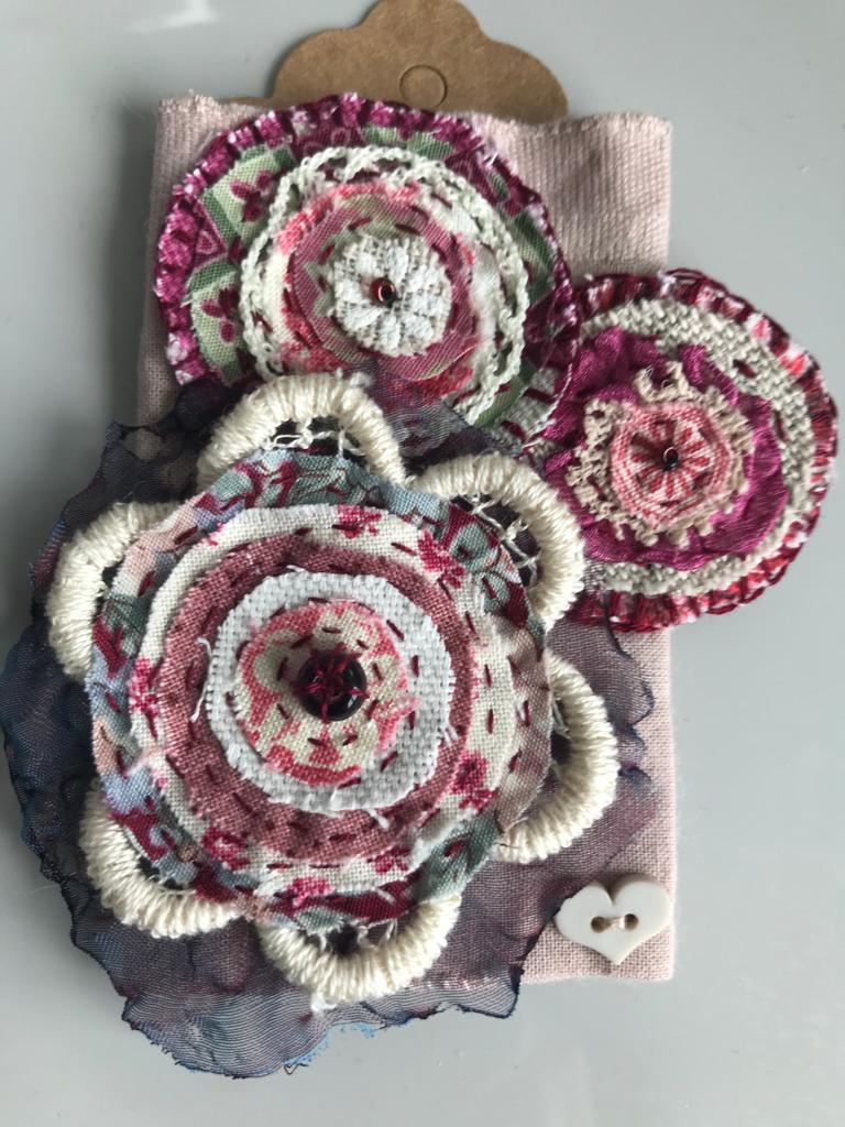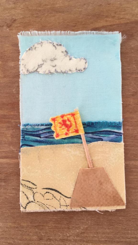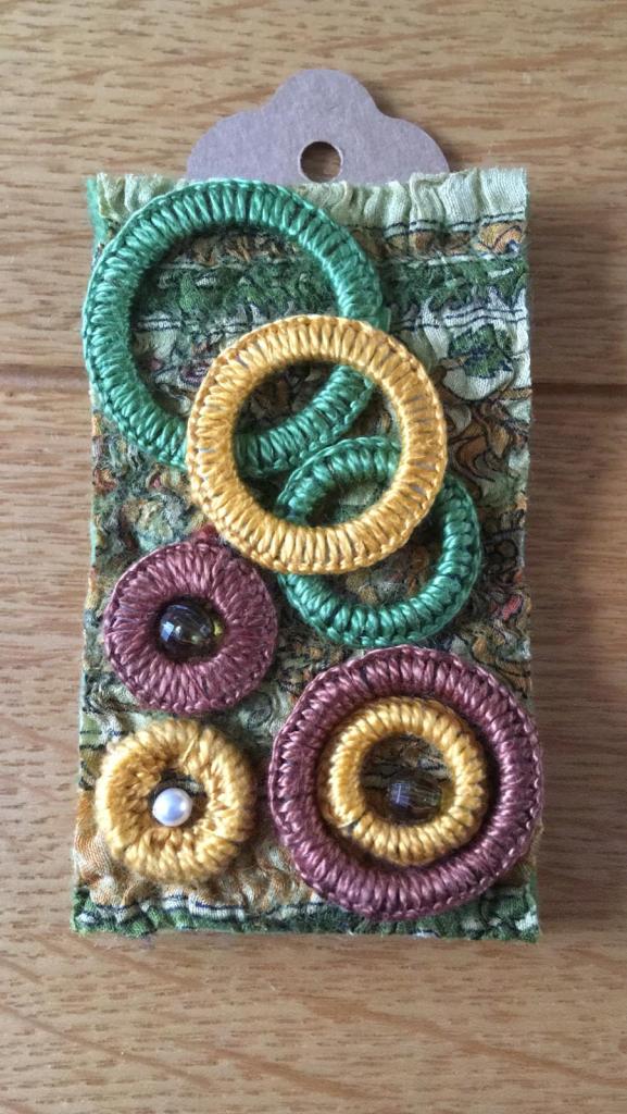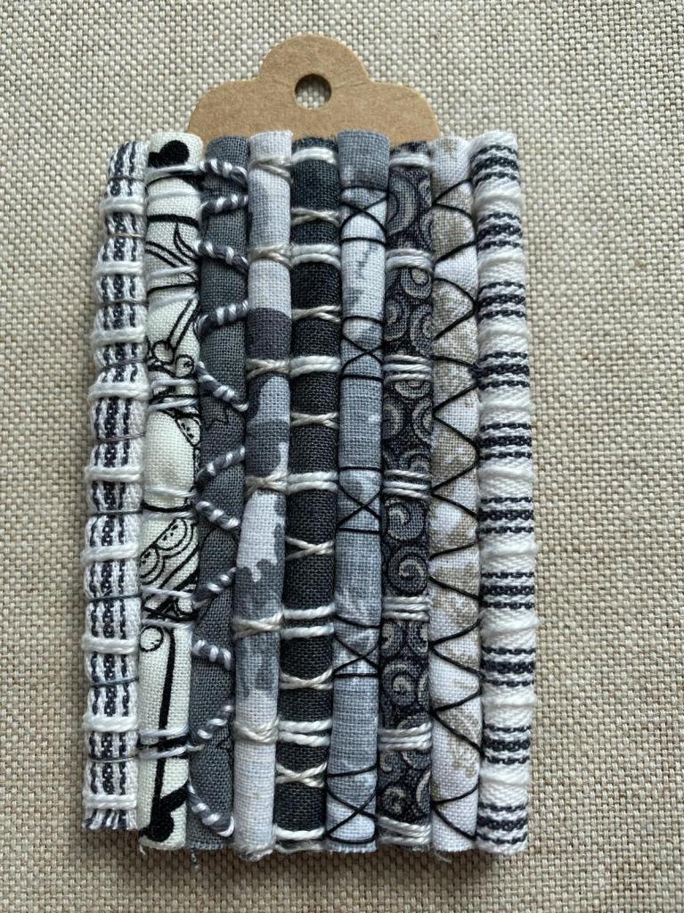 Our 2021 project was based on a challenge set by textile artist Anne Brooke, Sue V coordinated the project for our group. We created a series of mini stitched pieces, one a week for 52 weeks, each with a theme given by Anne Brooke which we attached to a luggage label or similar with the date and a memory of that week written on the reverse of the label.