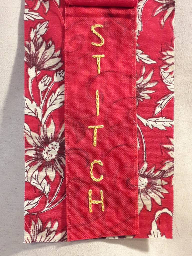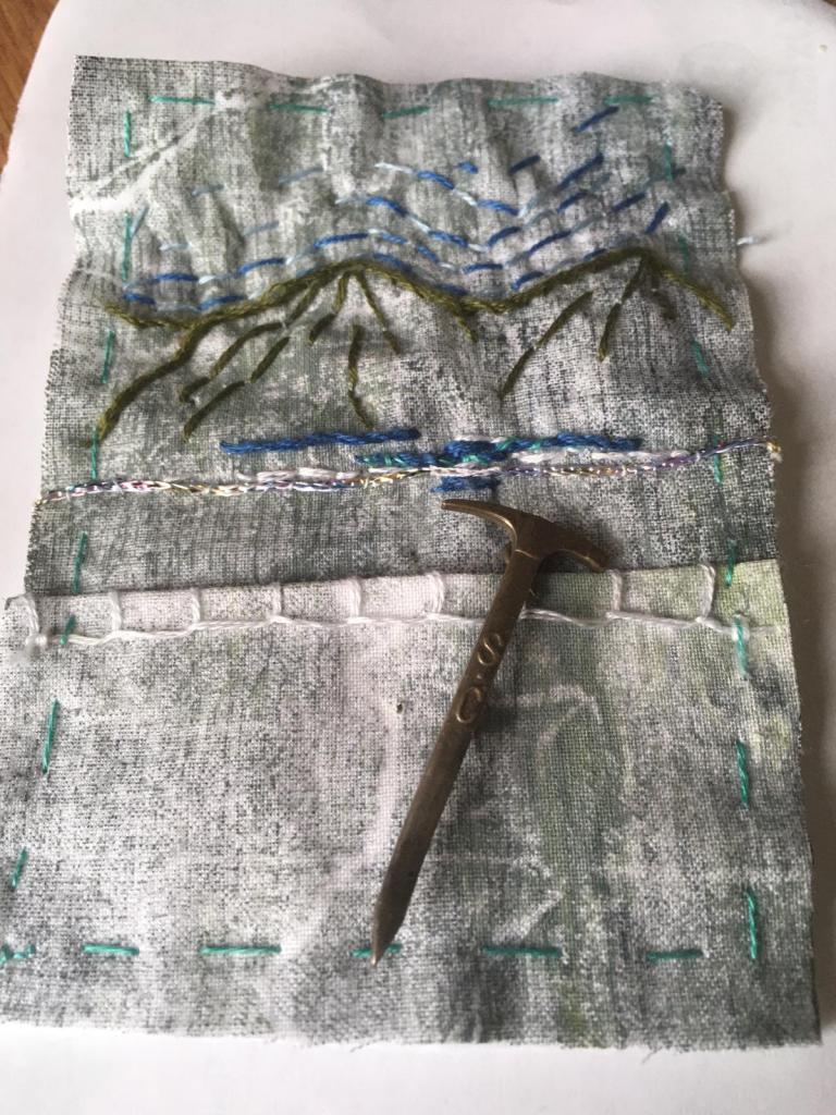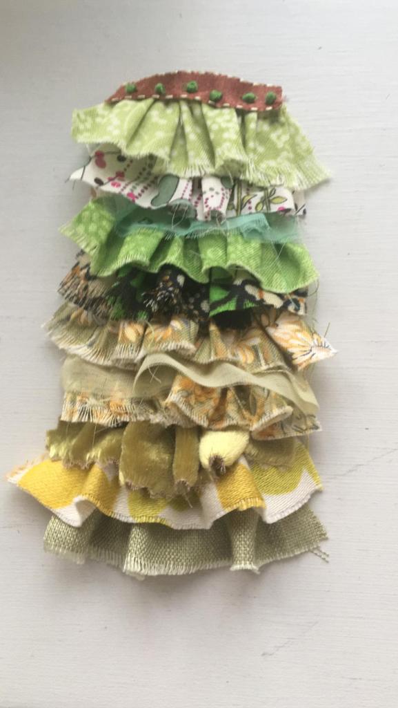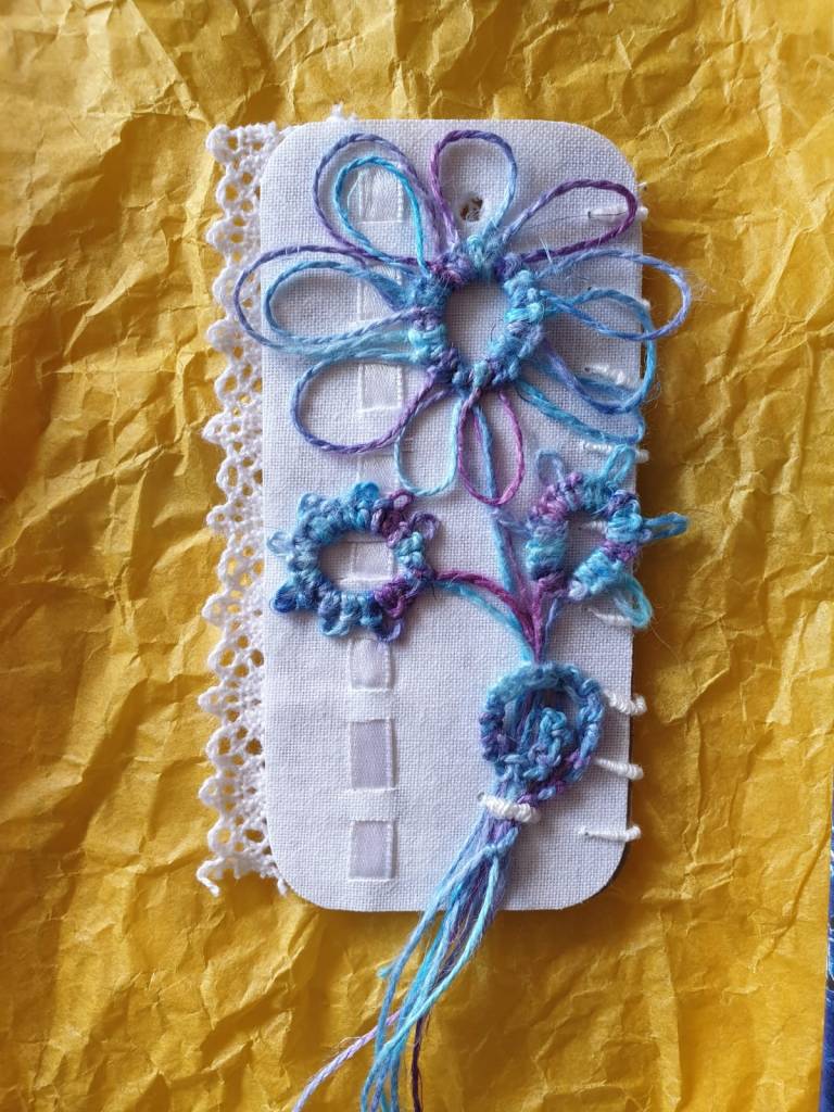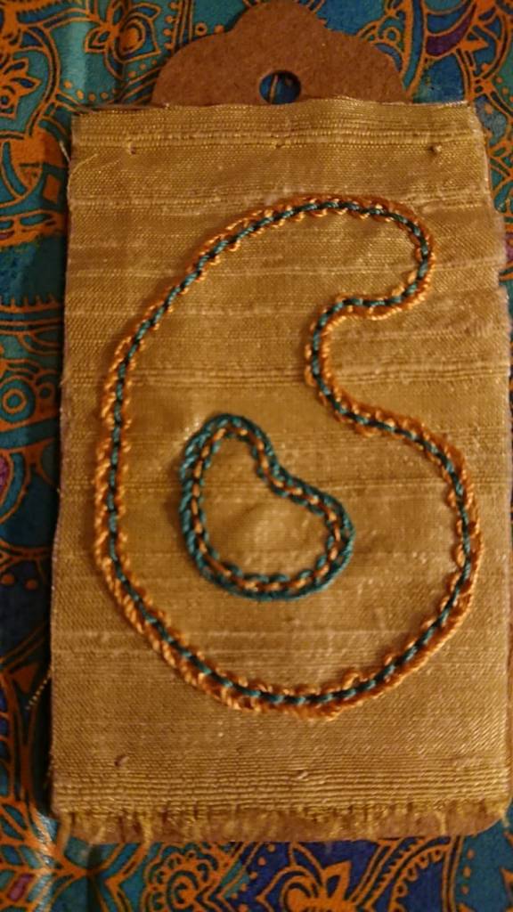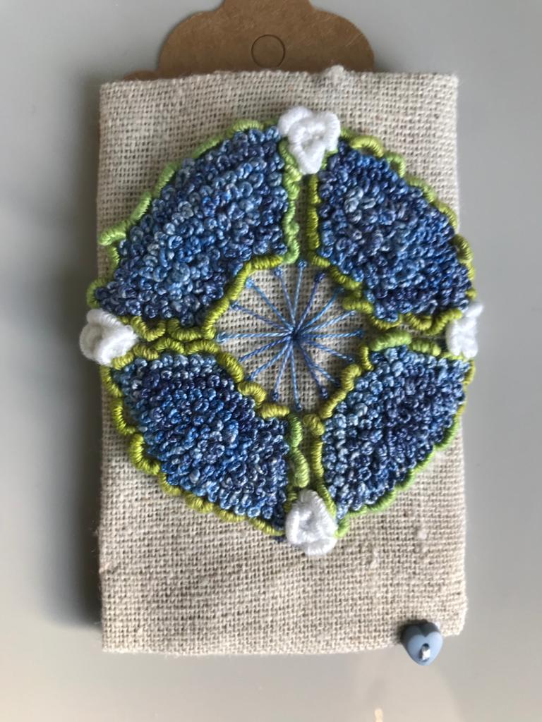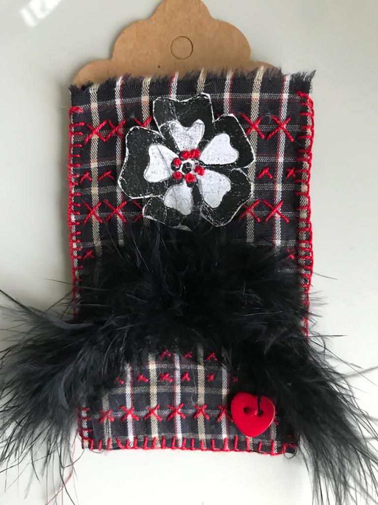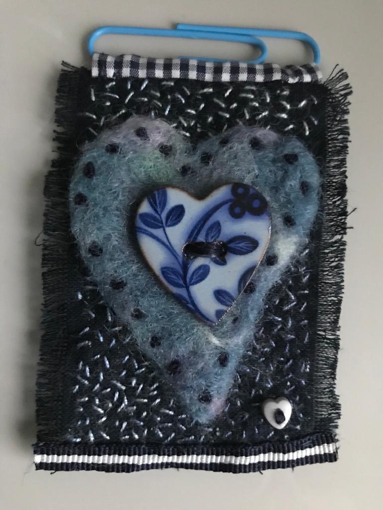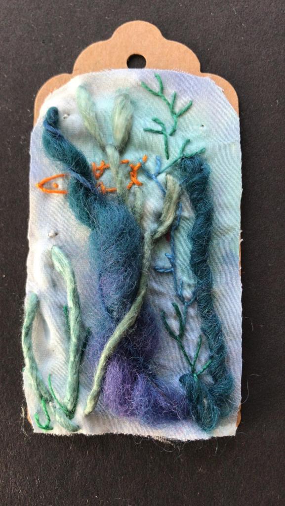 Our 2021 project was based on a challenge set by textile artist Anne Brooke, Sue V coordinated the project for our group. We created a series of mini stitched pieces, one a week for 52 weeks, each with a theme given by Anne Brooke which we attached to a luggage label or similar with the date and a memory of that week written on the reverse of the label.