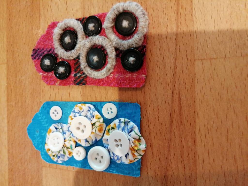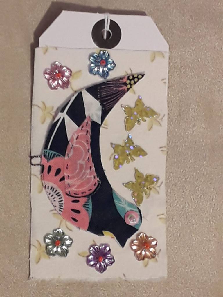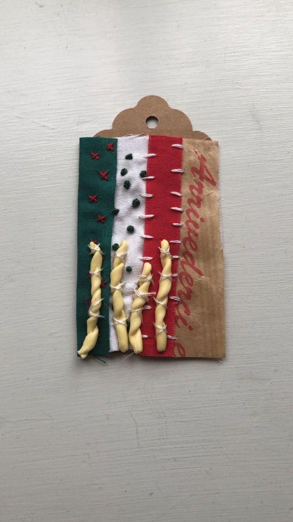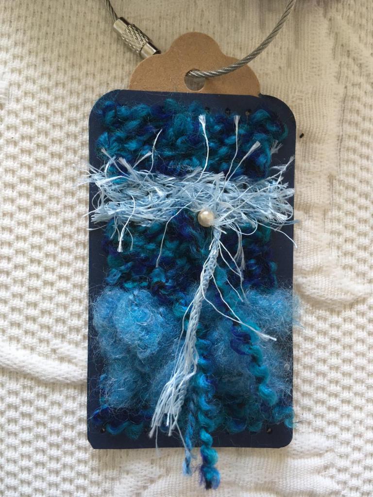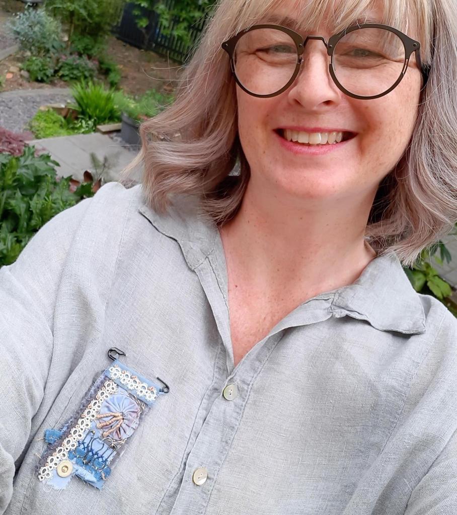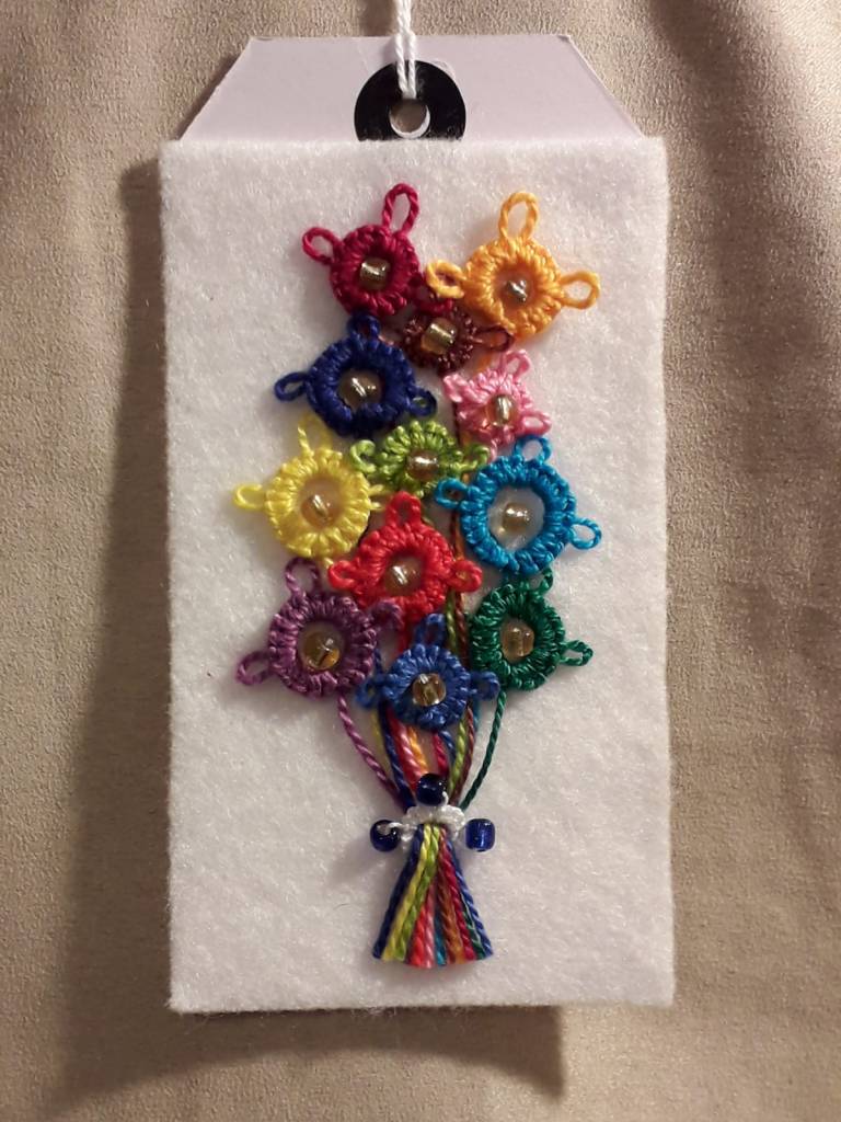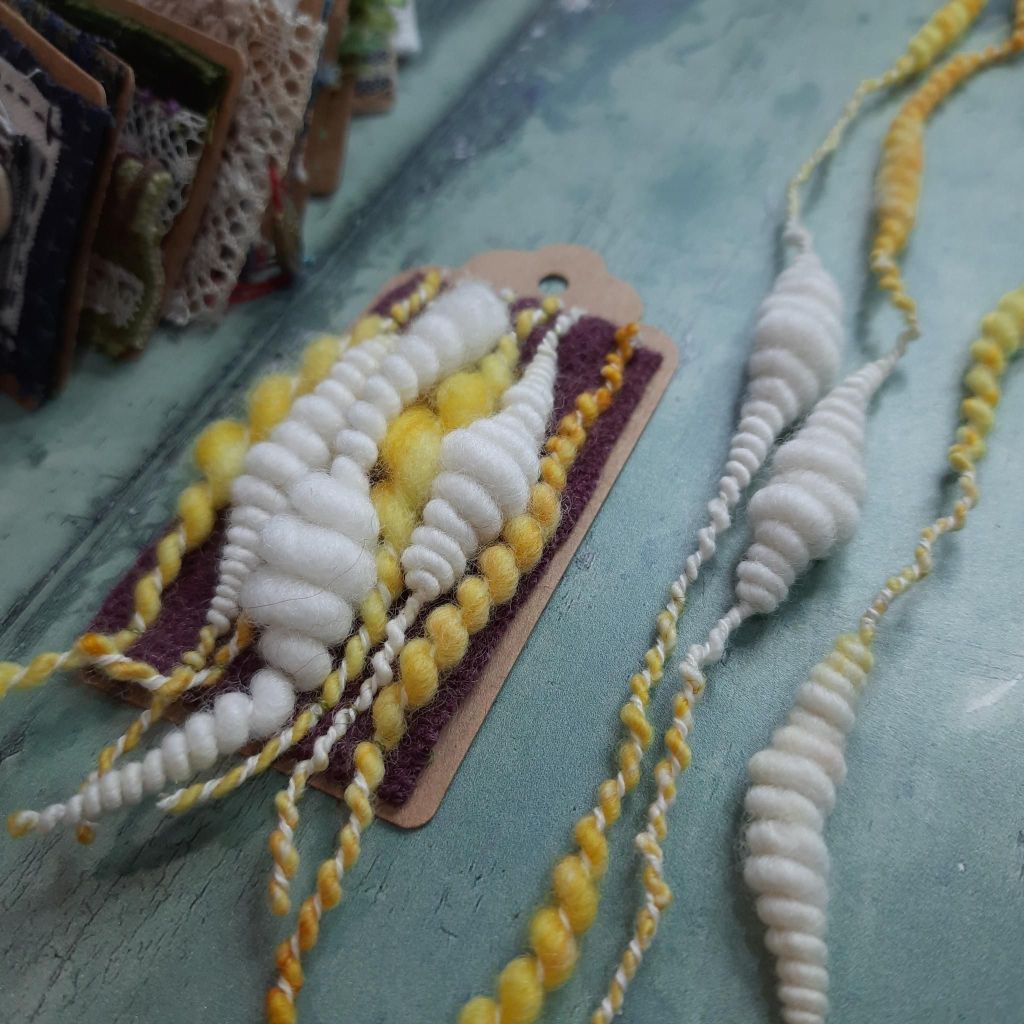 Our 2021 project was based on a challenge set by textile artist Anne Brooke, Sue V coordinated the project for our group. We created a series of mini stitched pieces, one a week for 52 weeks, each with a theme given by Anne Brooke which we attached to a luggage label or similar with the date and a memory of that week written on the reverse of the label.