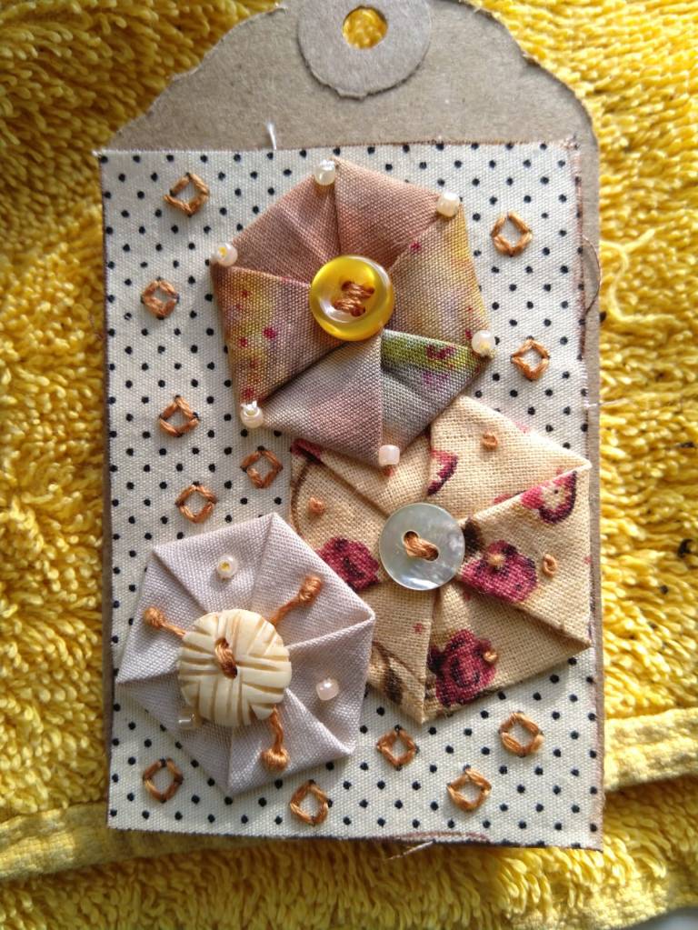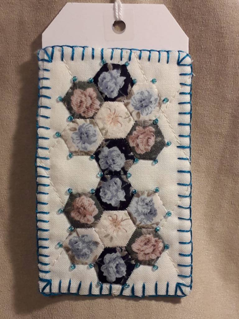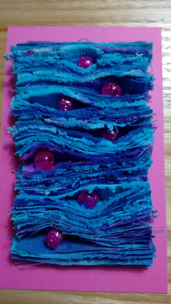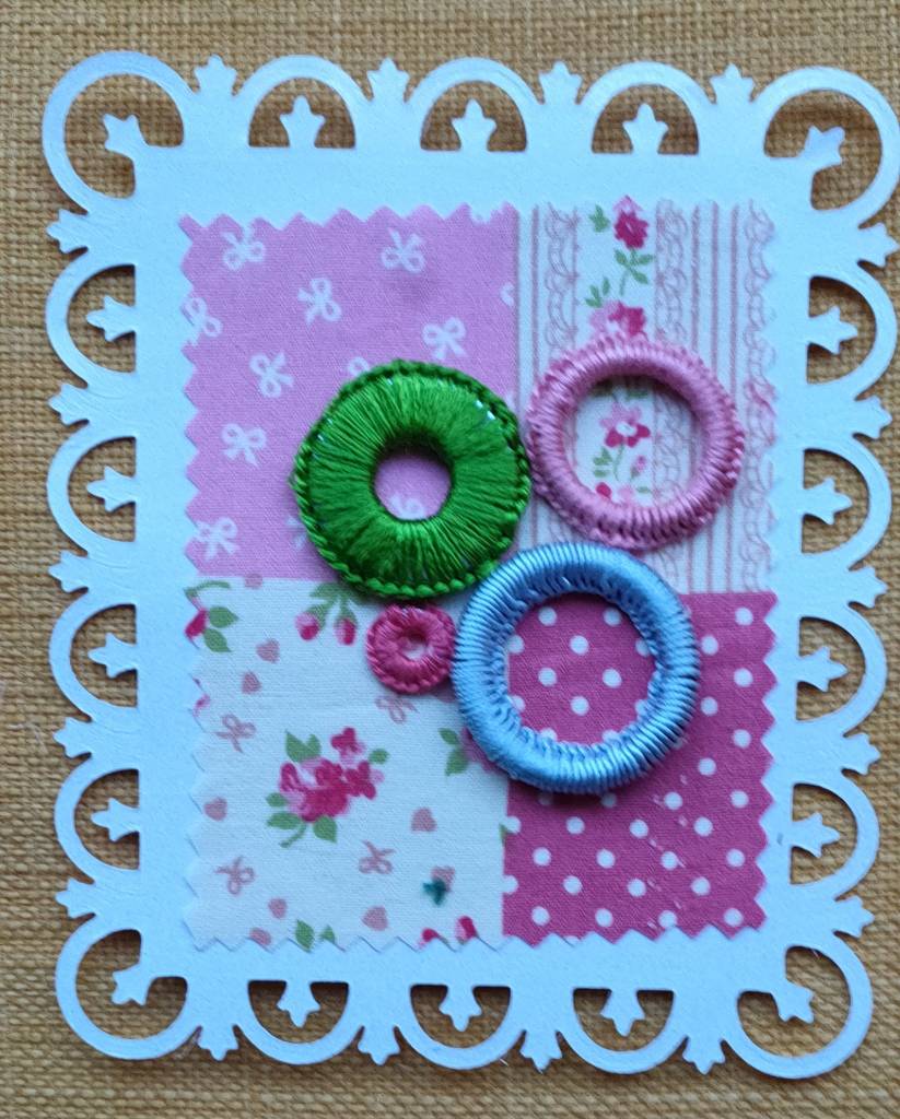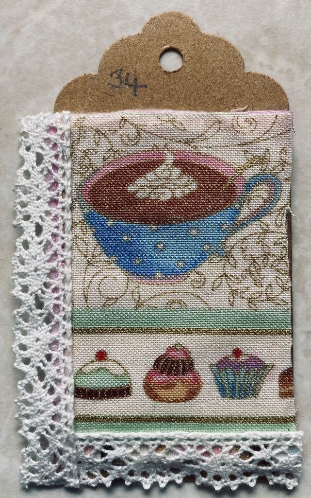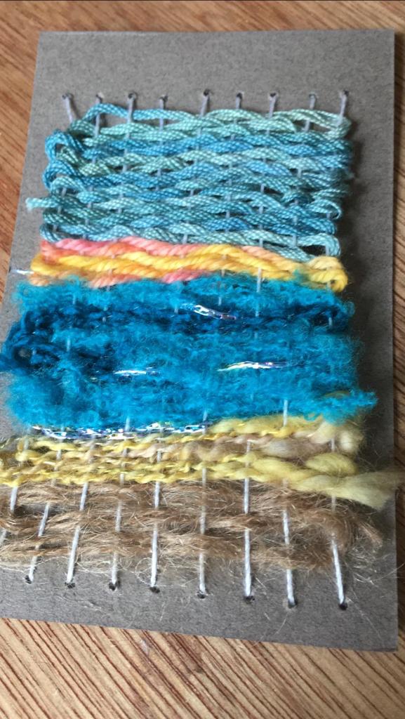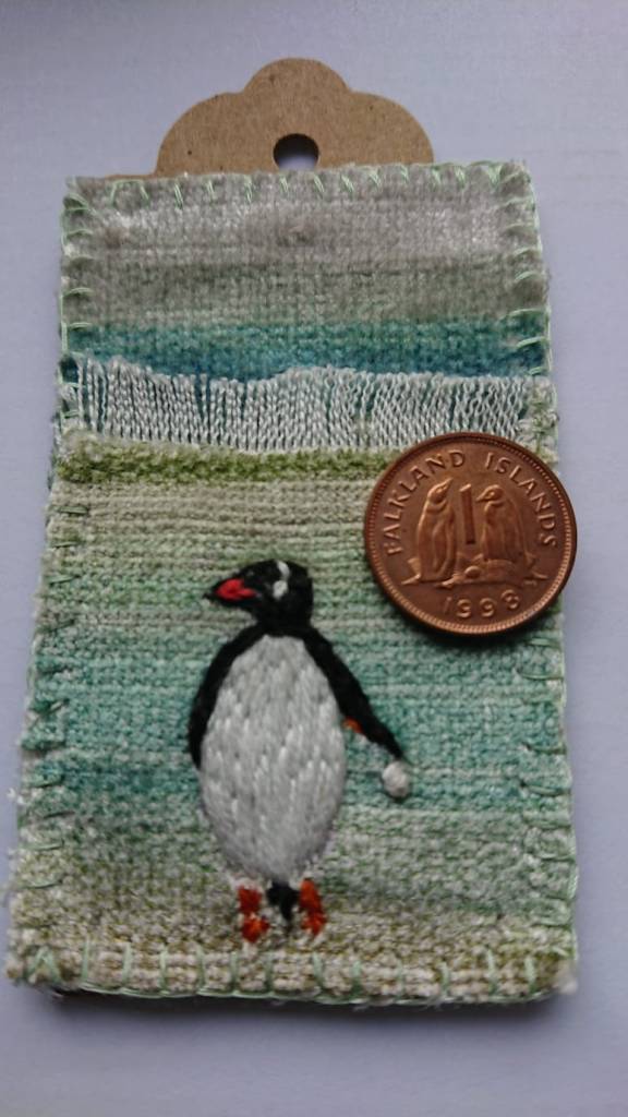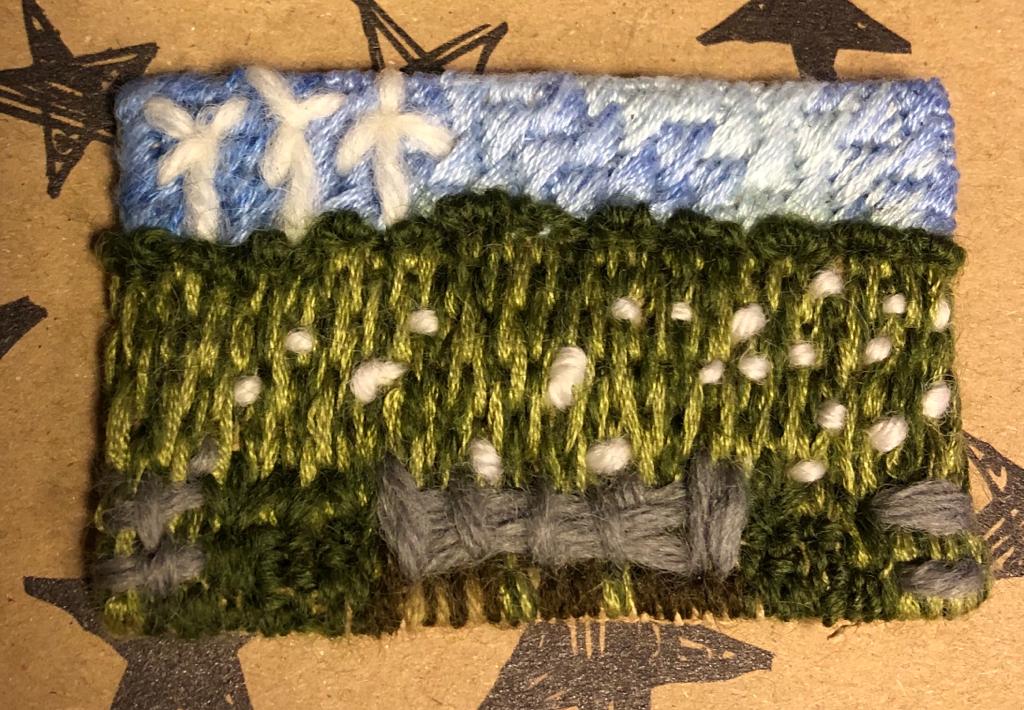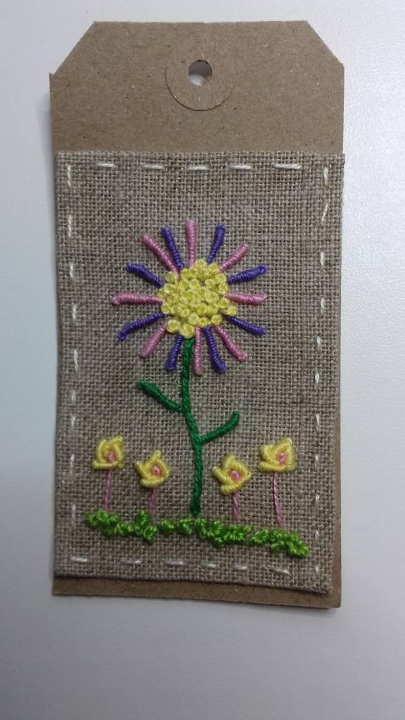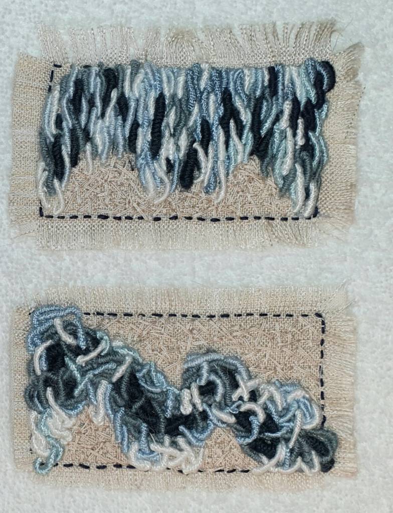 Our 2021 project was based on a challenge set by textile artist Anne Brooke, Sue V coordinated the project for our group. We created a series of mini stitched pieces, one a week for 52 weeks, each with a theme given by Anne Brooke which we attached to a luggage label or similar with the date and a memory of that week written on the reverse of the label.