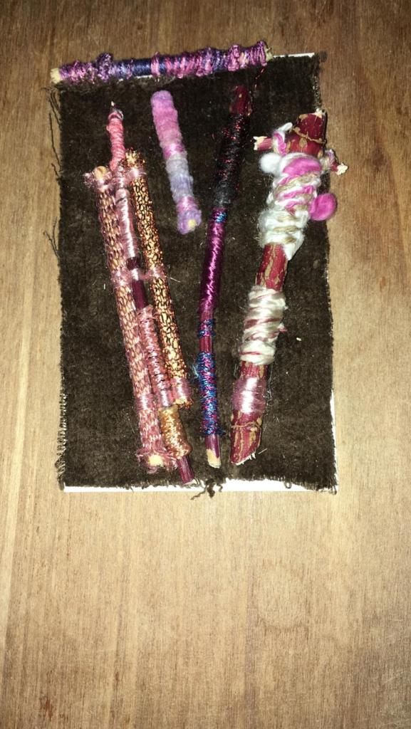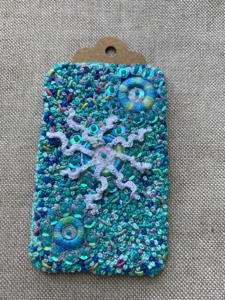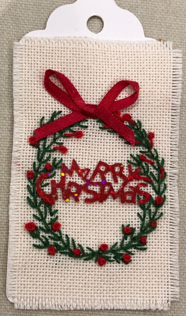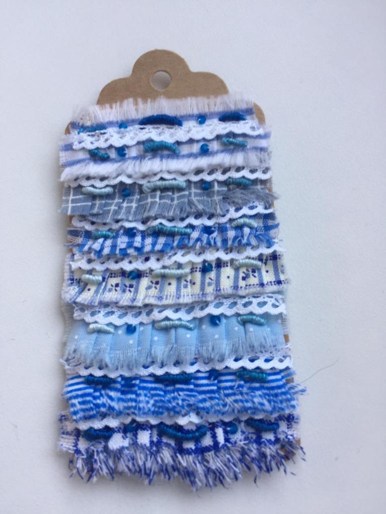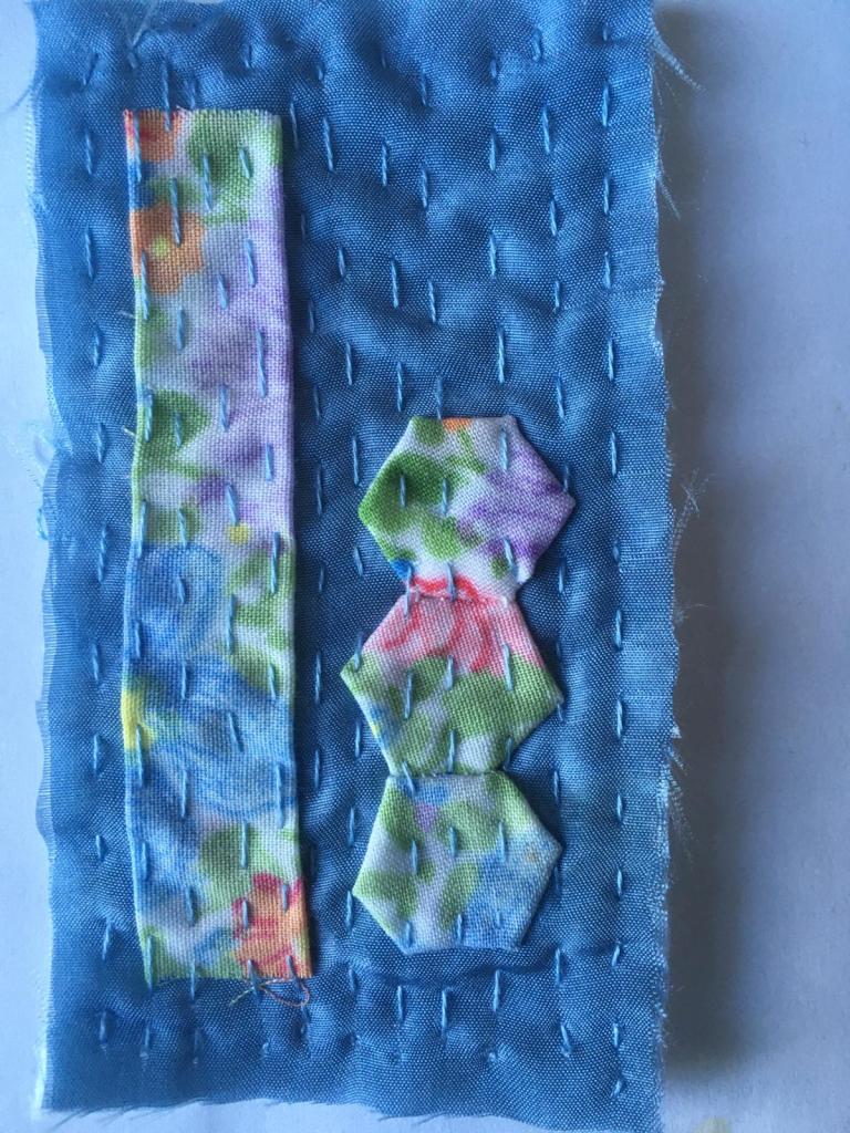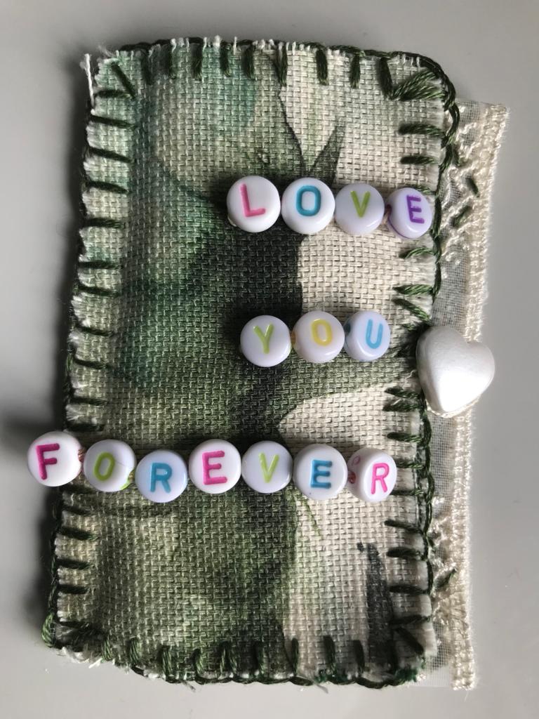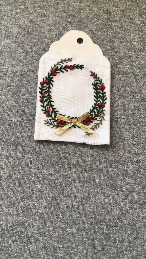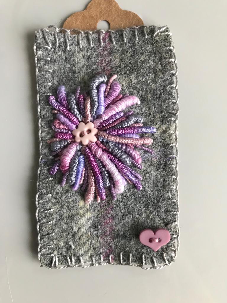 Our 2021 project was based on a challenge set by textile artist Anne Brooke, Sue V coordinated the project for our group. We created a series of mini stitched pieces, one a week for 52 weeks, each with a theme given by Anne Brooke which we attached to a luggage label or similar with the date and a memory of that week written on the reverse of the label.