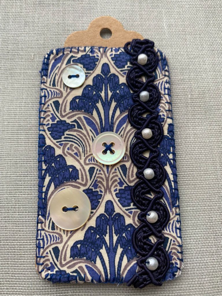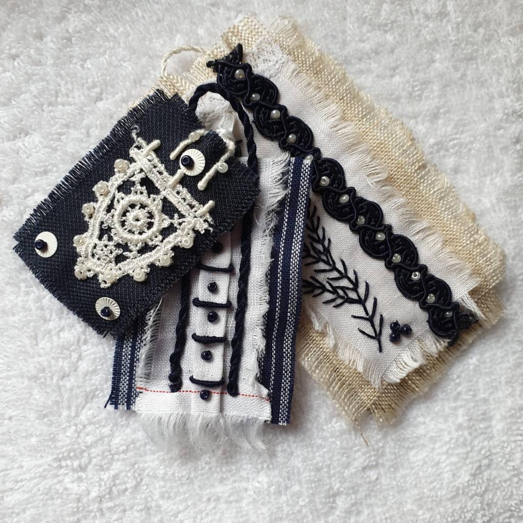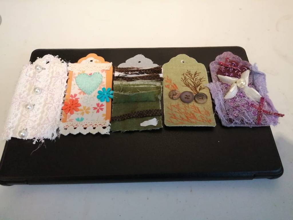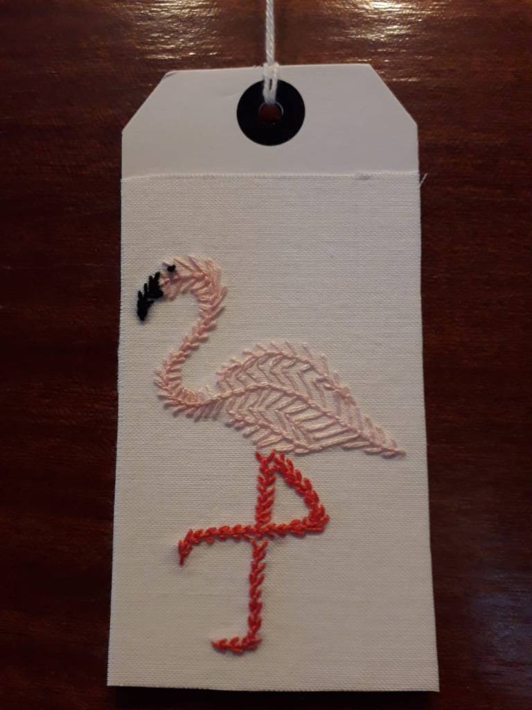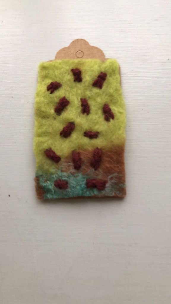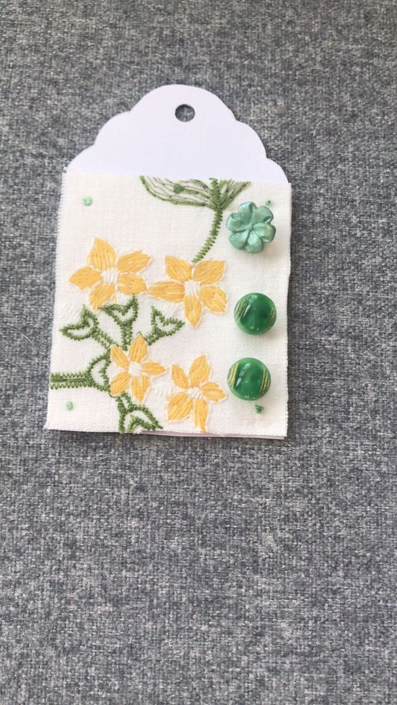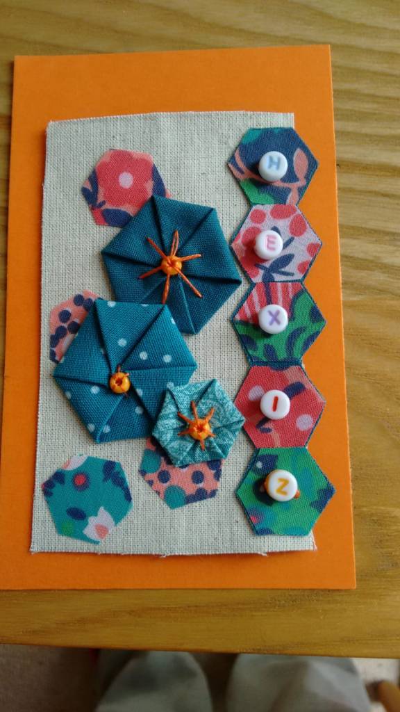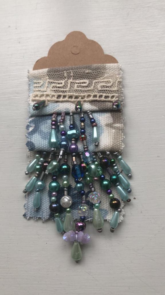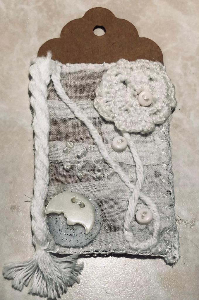 Our 2021 project was based on a challenge set by textile artist Anne Brooke, Sue V coordinated the project for our group. We created a series of mini stitched pieces, one a week for 52 weeks, each with a theme given by Anne Brooke which we attached to a luggage label or similar with the date and a memory of that week written on the reverse of the label.