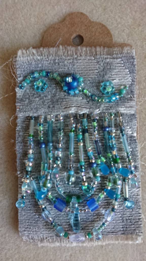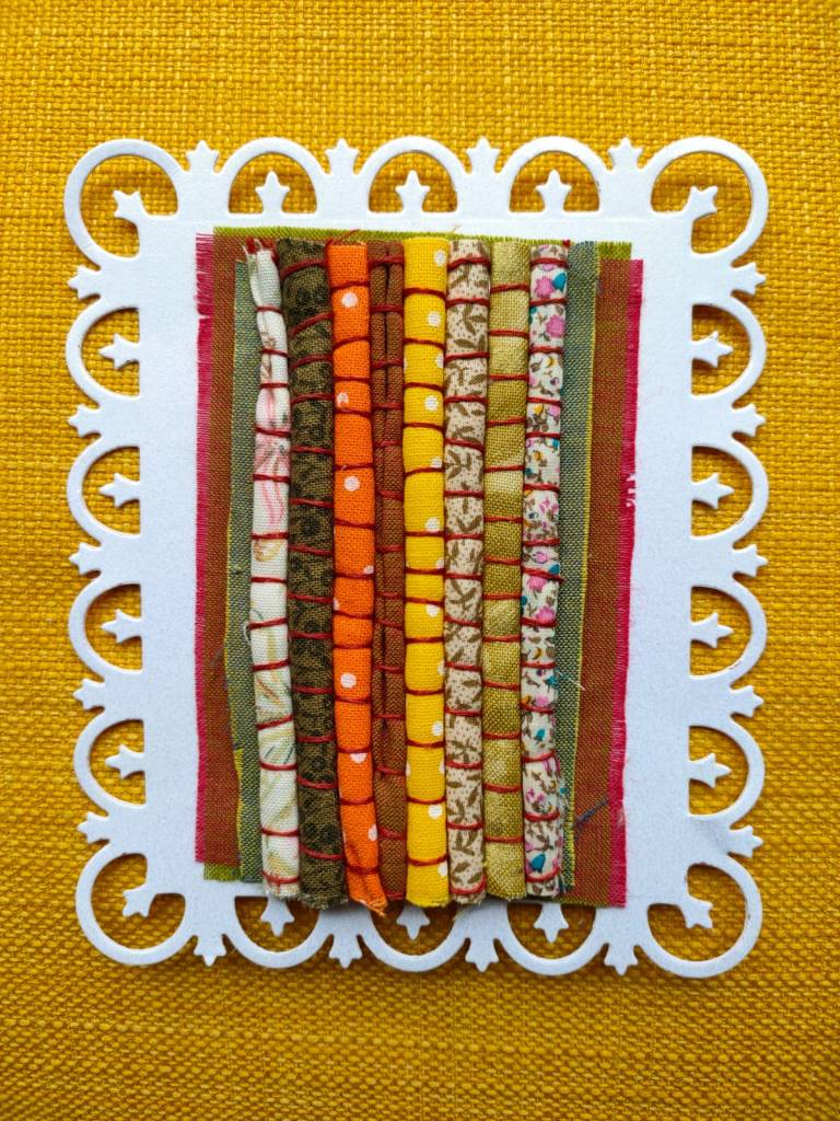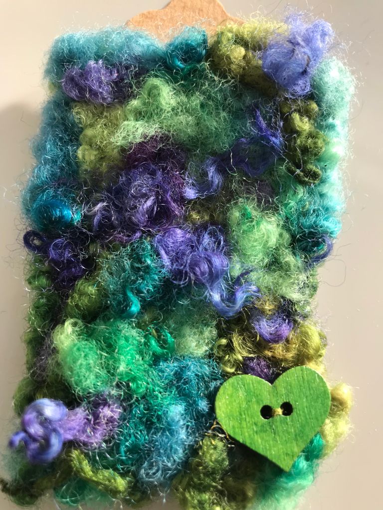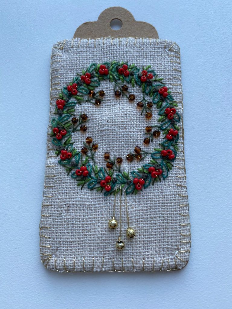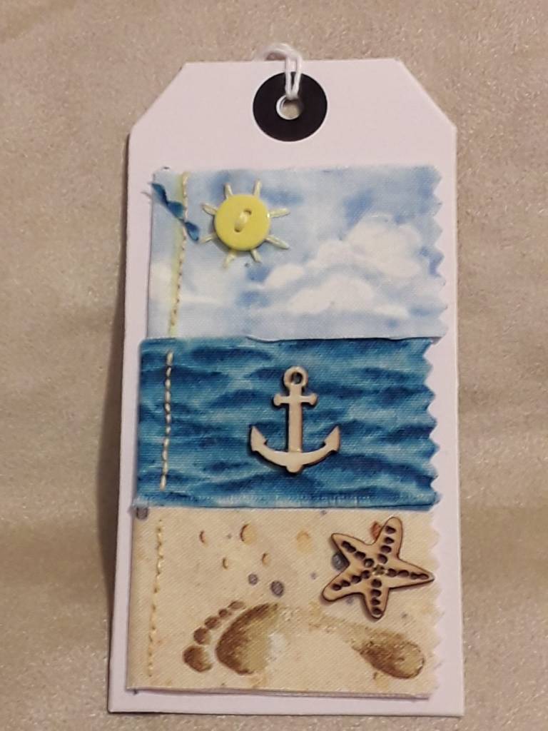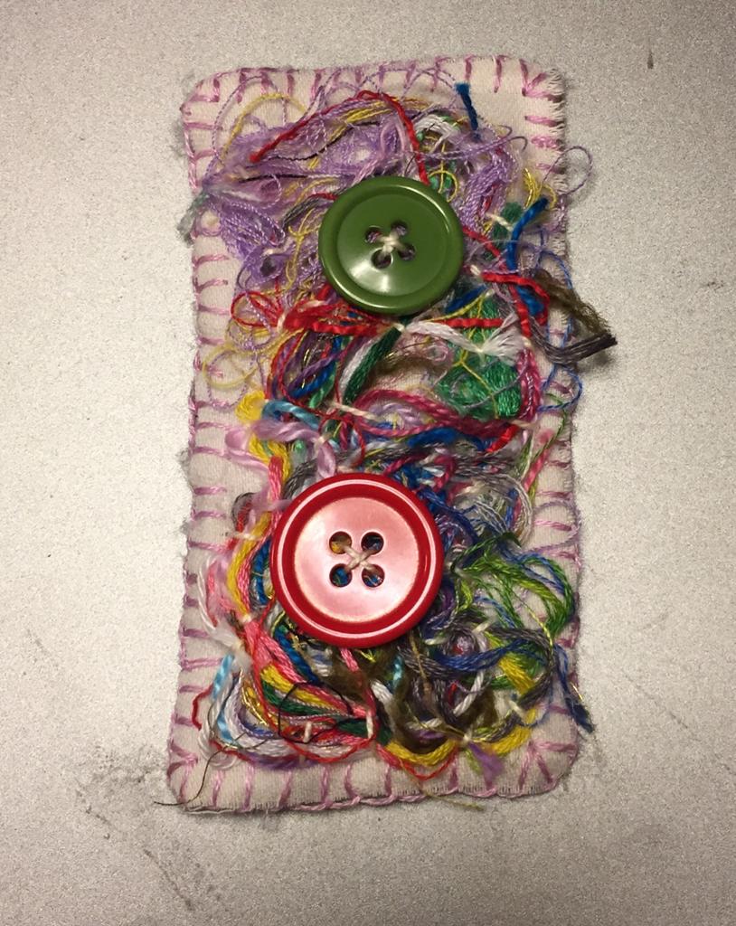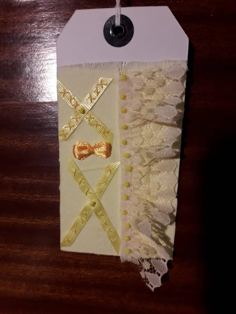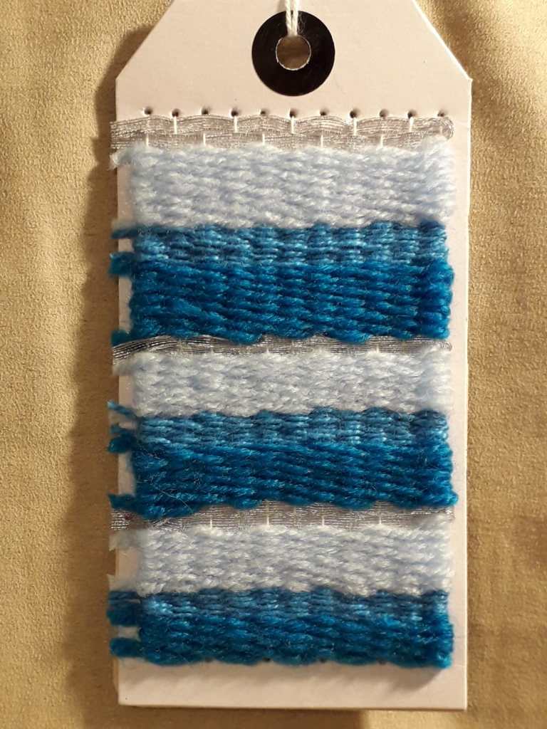 Our 2021 project was based on a challenge set by textile artist Anne Brooke, Sue V coordinated the project for our group. We created a series of mini stitched pieces, one a week for 52 weeks, each with a theme given by Anne Brooke which we attached to a luggage label or similar with the date and a memory of that week written on the reverse of the label.