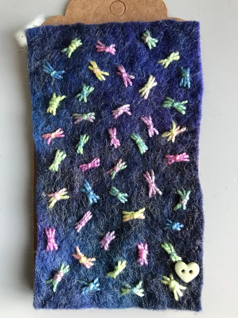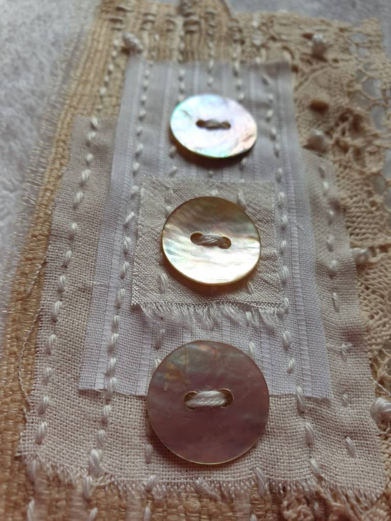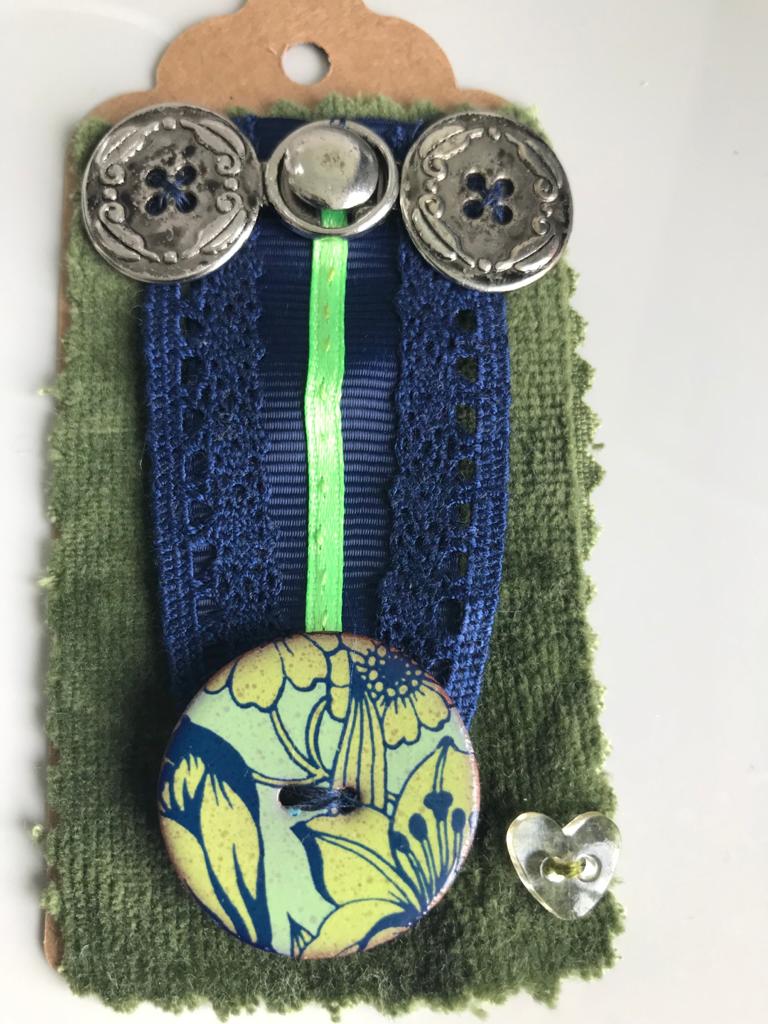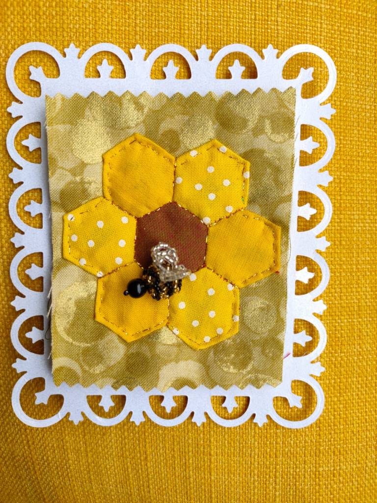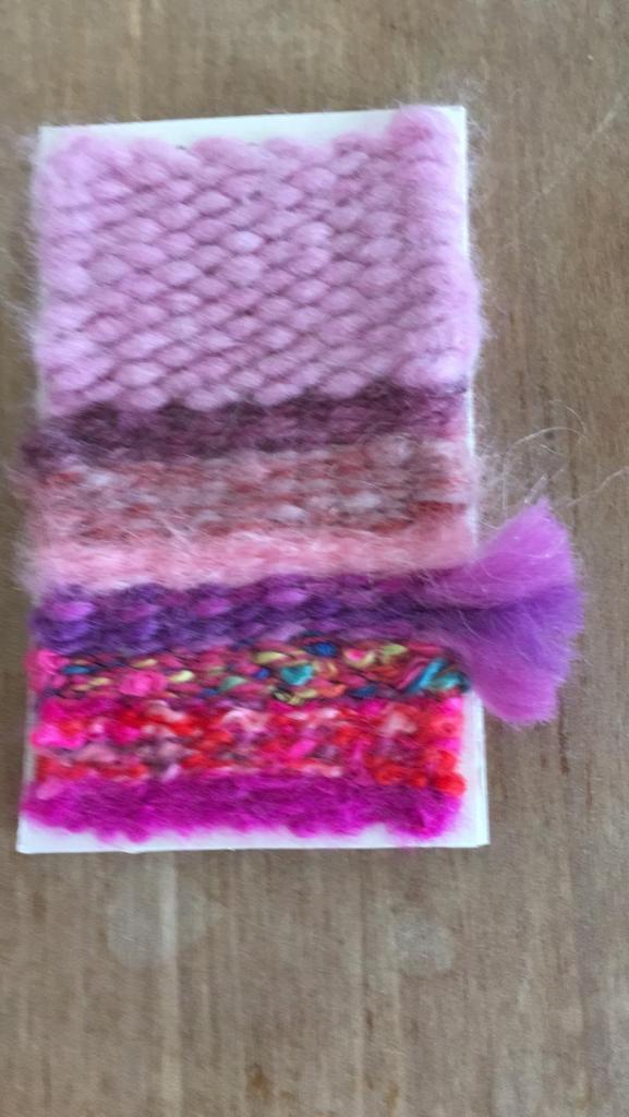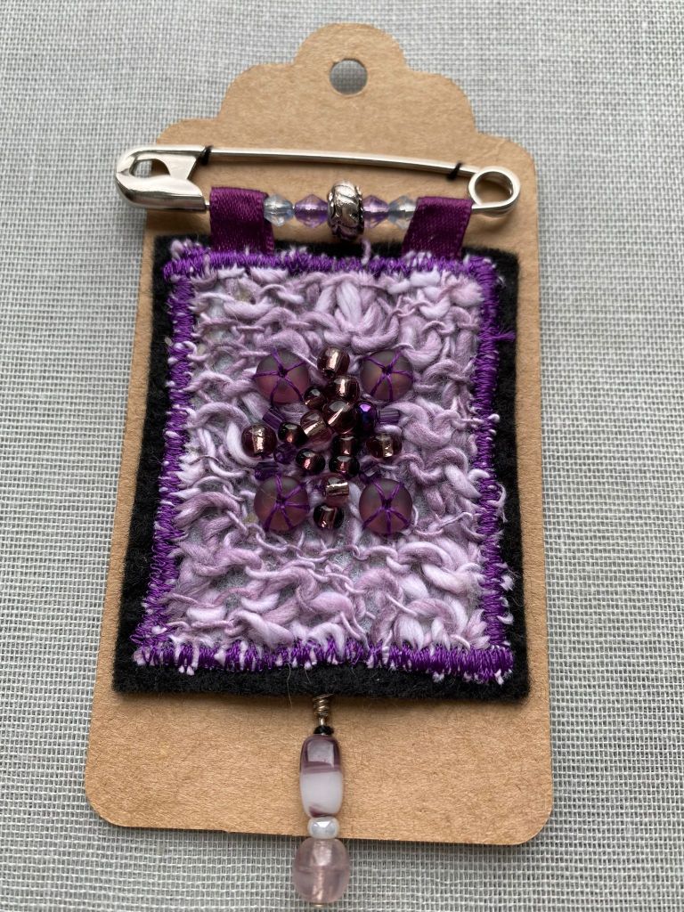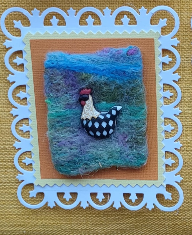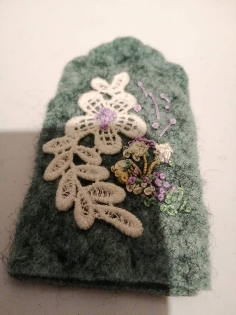 Our 2021 project was based on a challenge set by textile artist Anne Brooke, Sue V coordinated the project for our group. We created a series of mini stitched pieces, one a week for 52 weeks, each with a theme given by Anne Brooke which we attached to a luggage label or similar with the date and a memory of that week written on the reverse of the label.