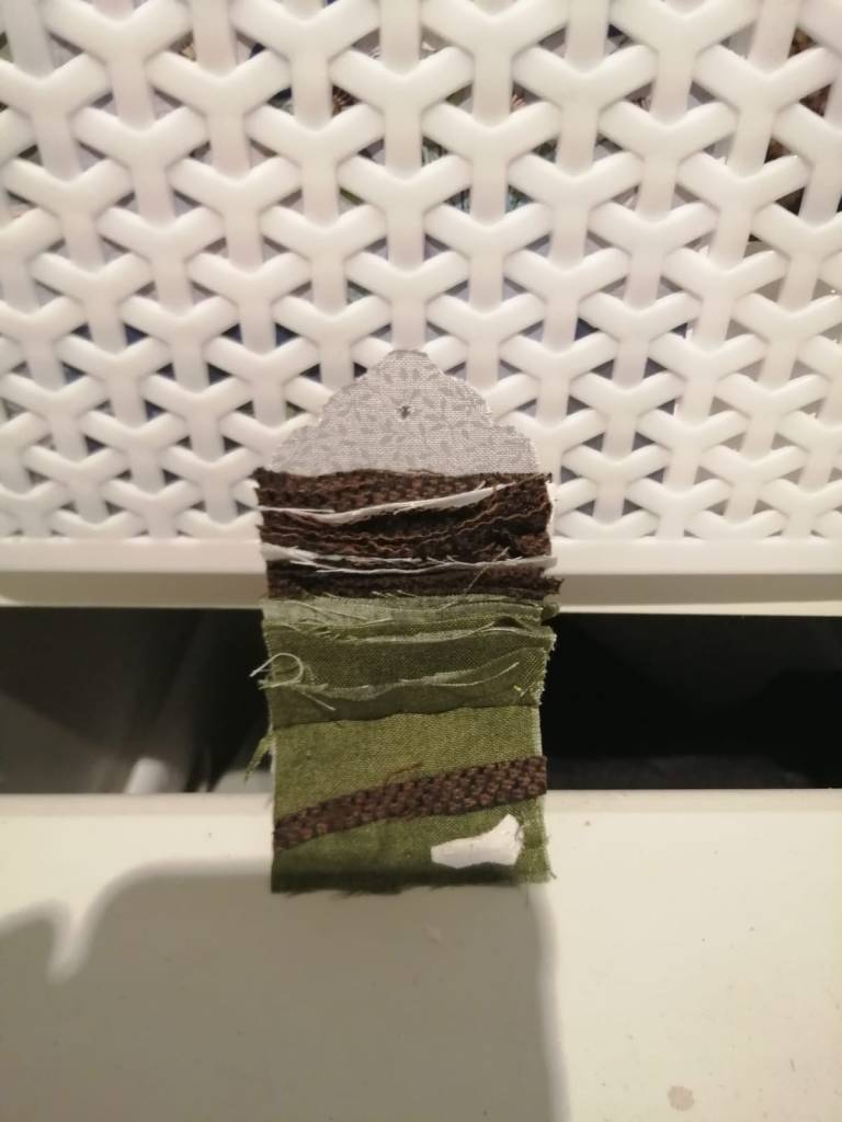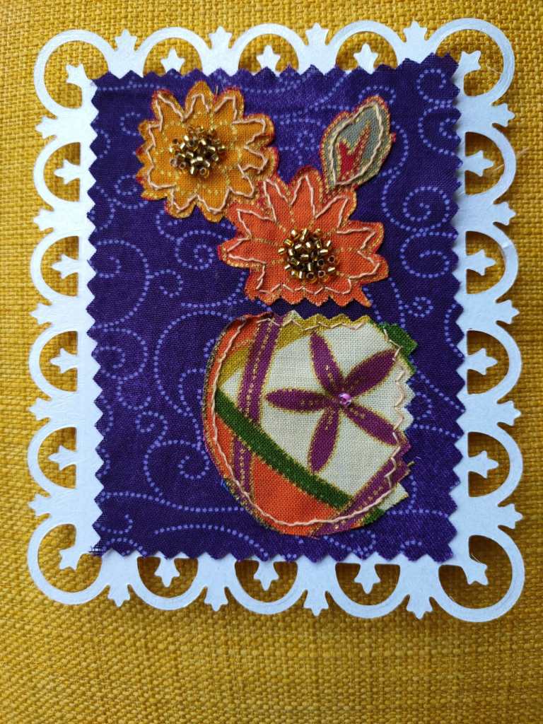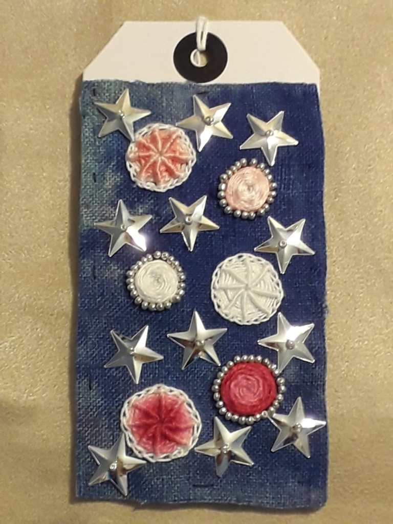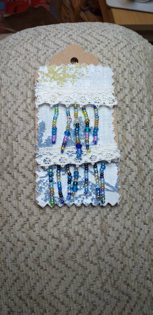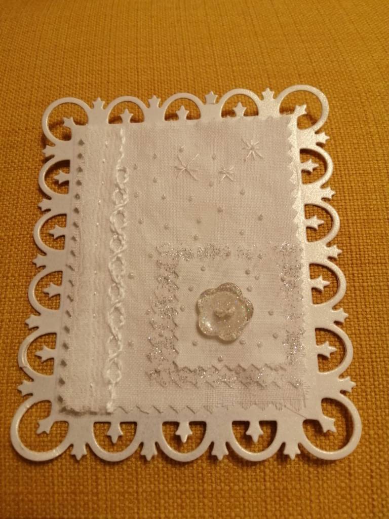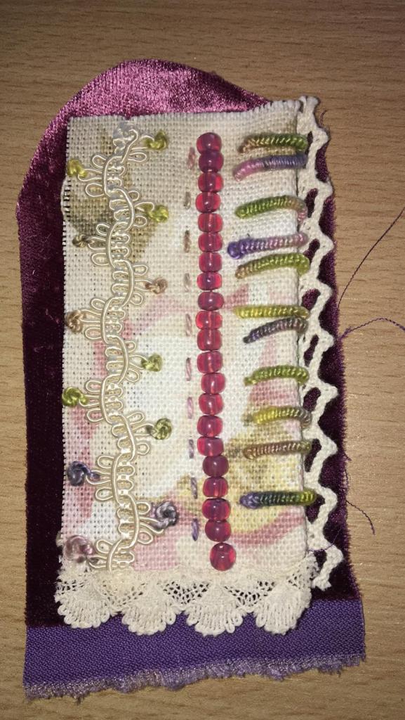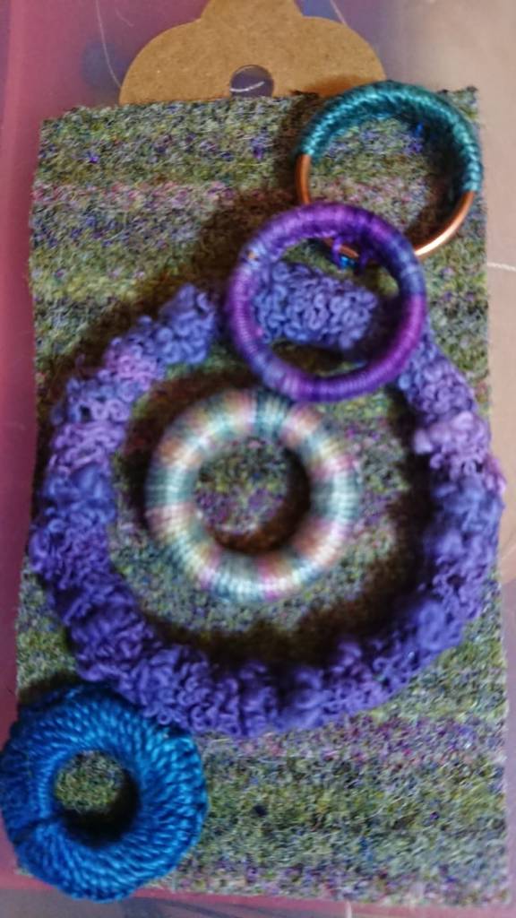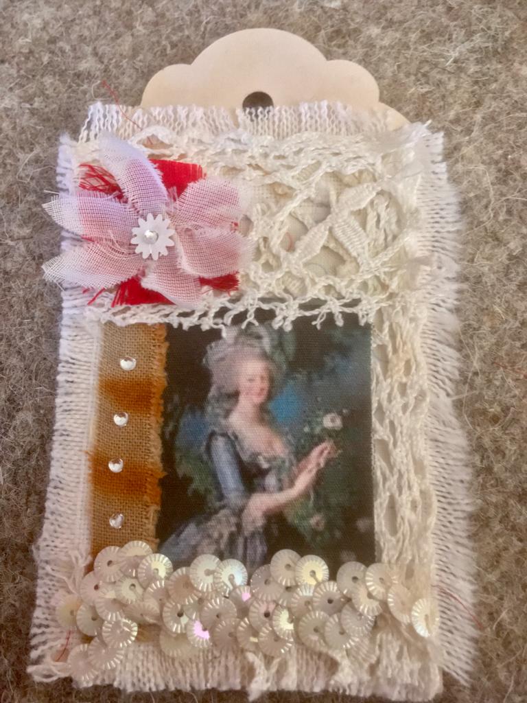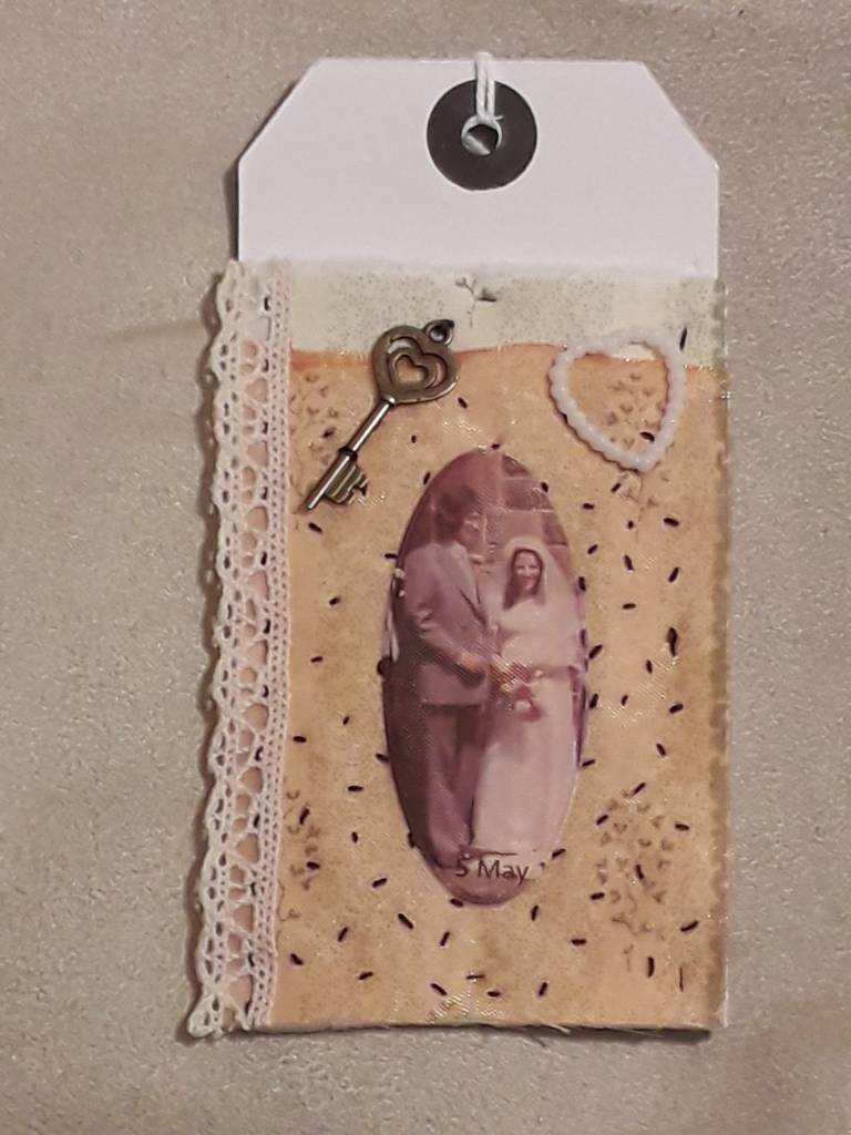 Our 2021 project was based on a challenge set by textile artist Anne Brooke, Sue V coordinated the project for our group. We created a series of mini stitched pieces, one a week for 52 weeks, each with a theme given by Anne Brooke which we attached to a luggage label or similar with the date and a memory of that week written on the reverse of the label.