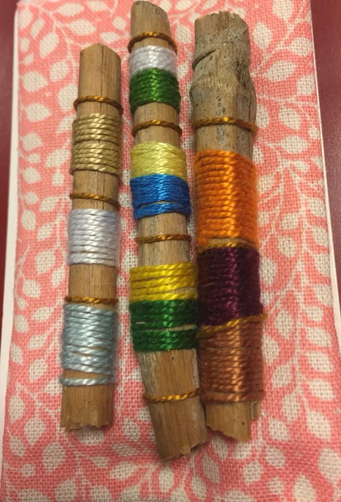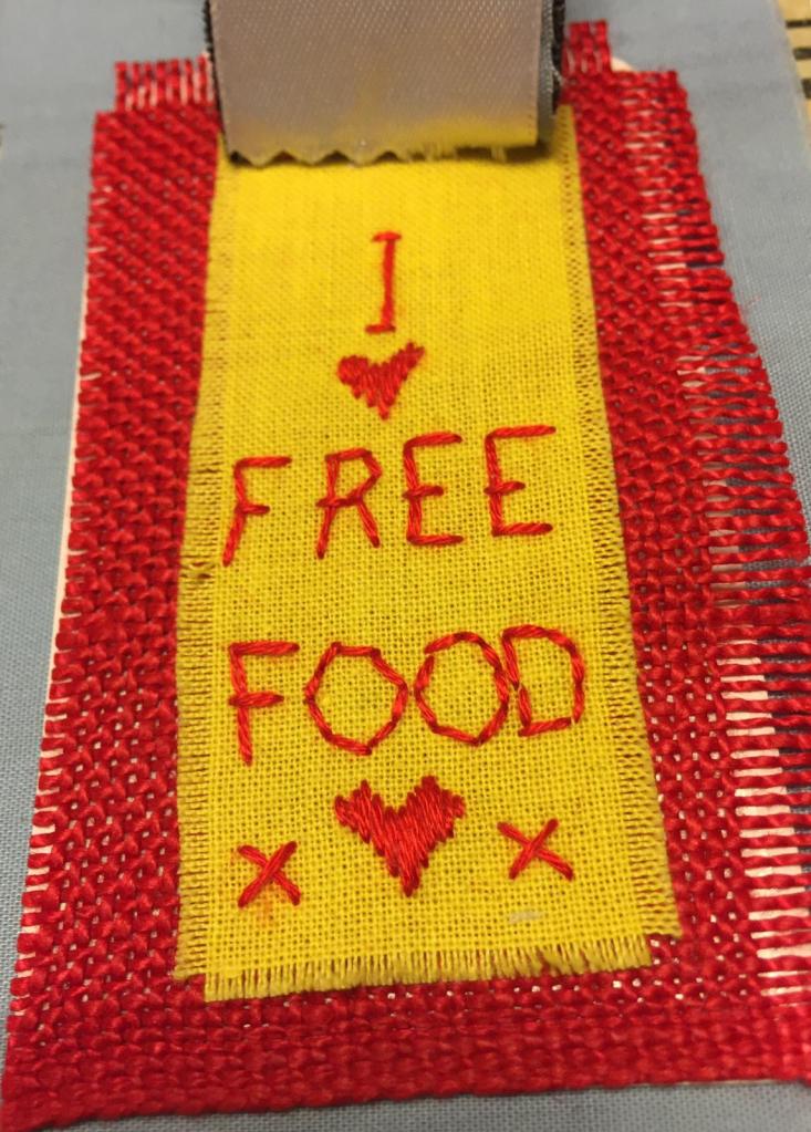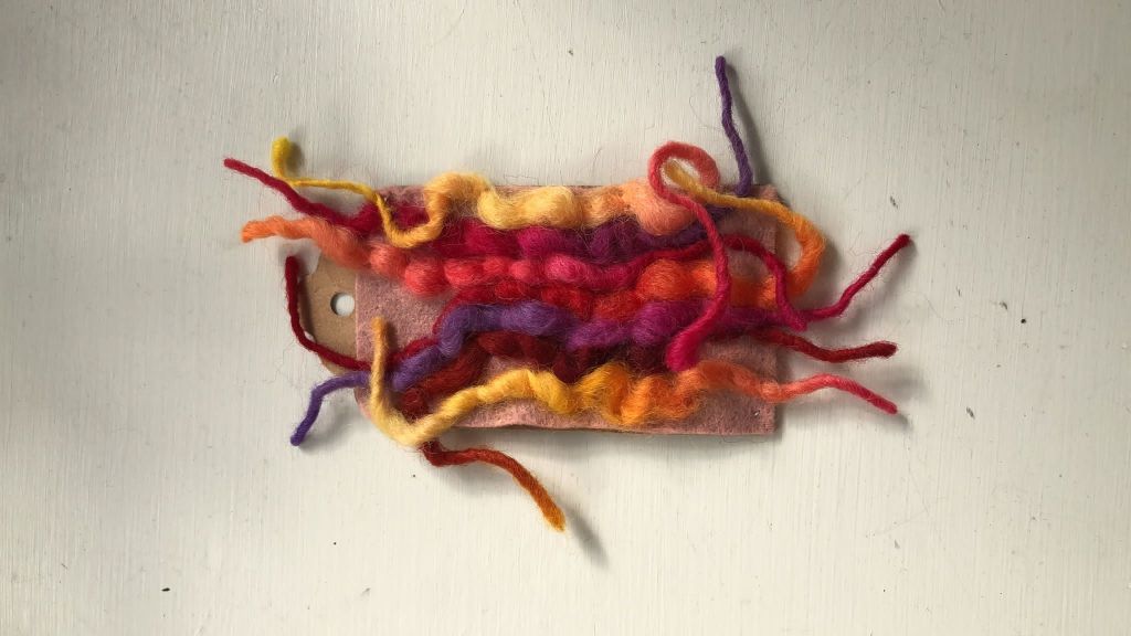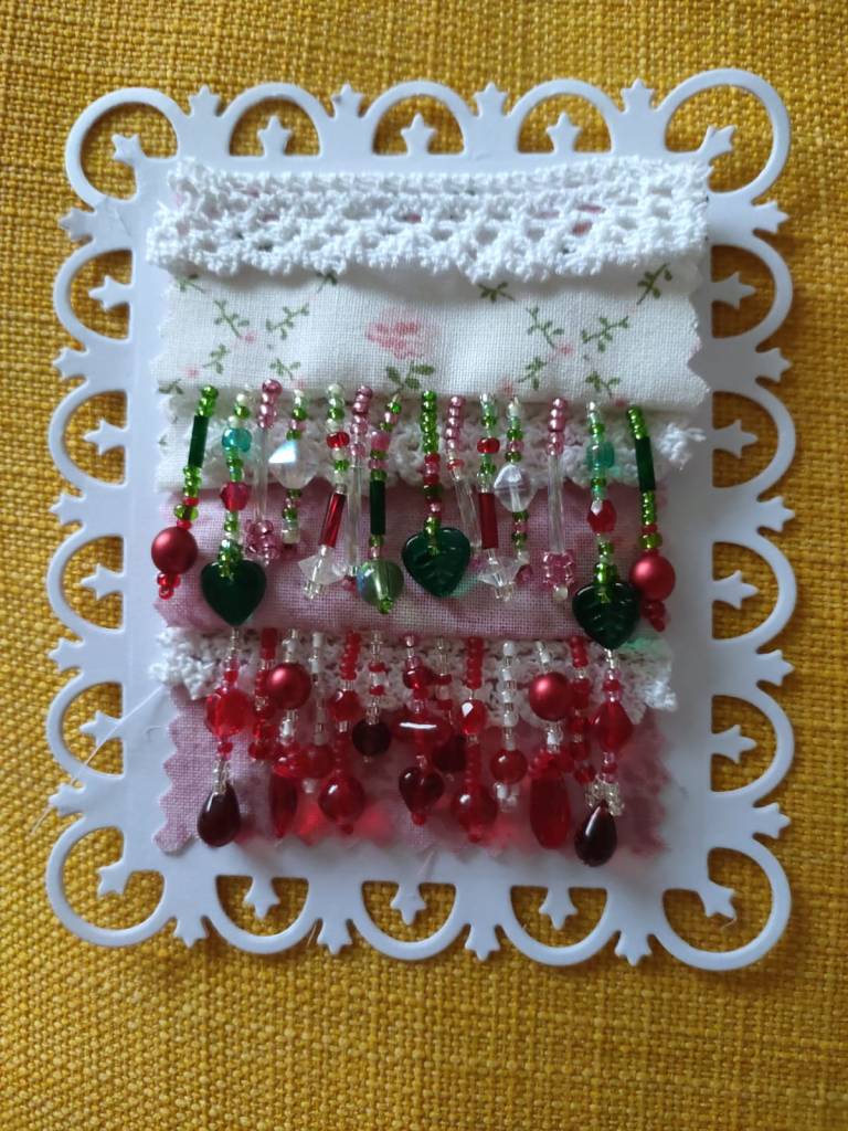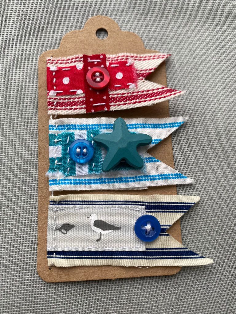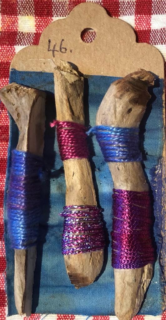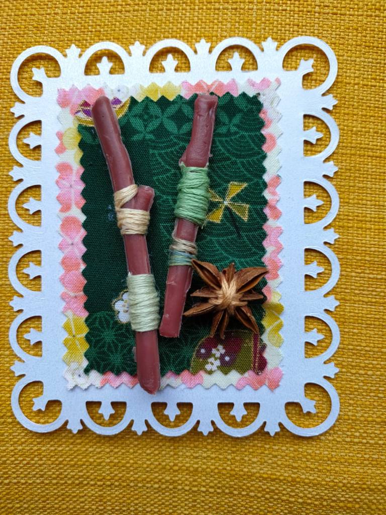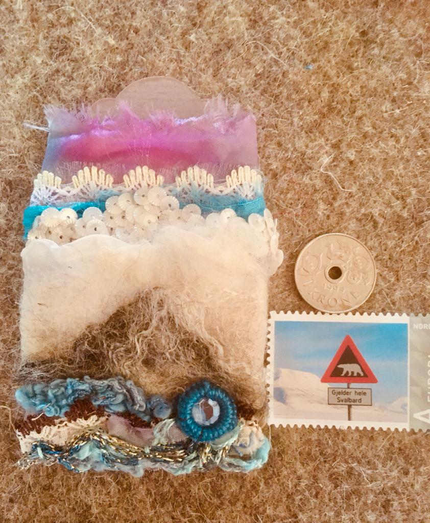 Our 2021 project was based on a challenge set by textile artist Anne Brooke, Sue V coordinated the project for our group. We created a series of mini stitched pieces, one a week for 52 weeks, each with a theme given by Anne Brooke which we attached to a luggage label or similar with the date and a memory of that week written on the reverse of the label.