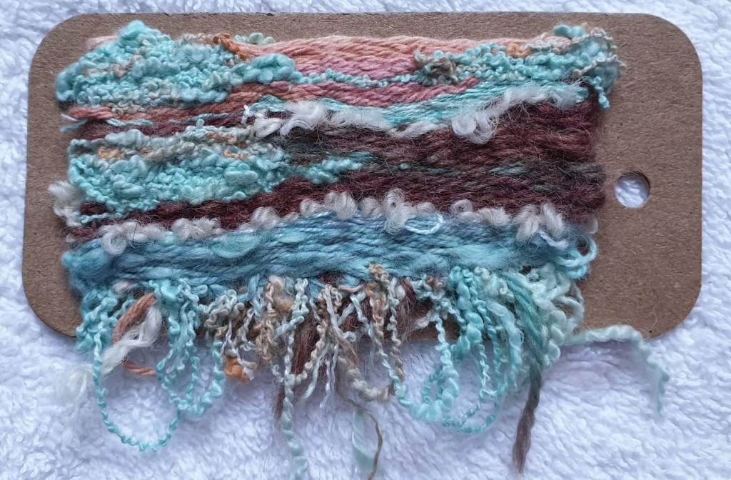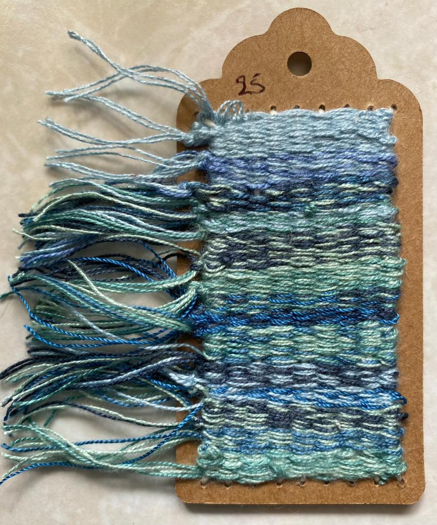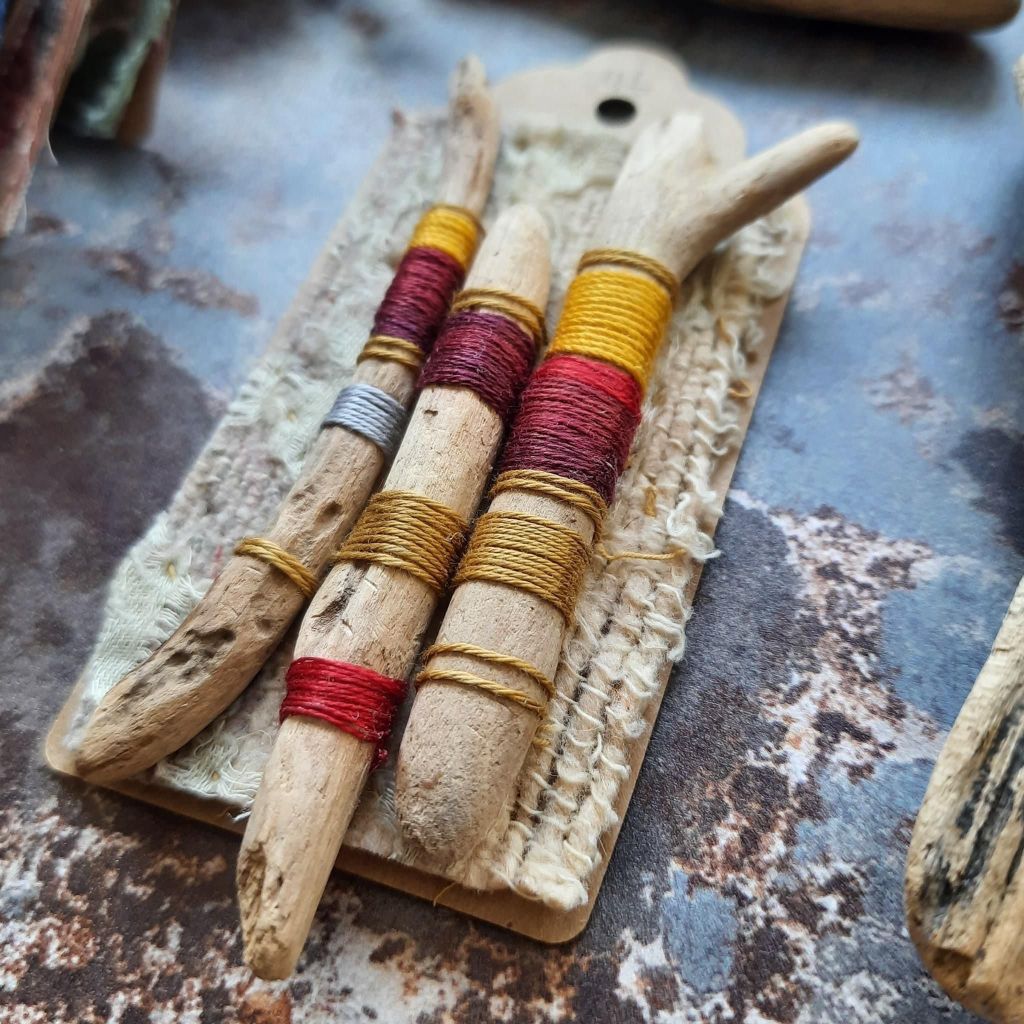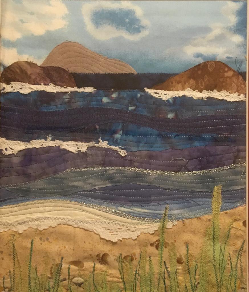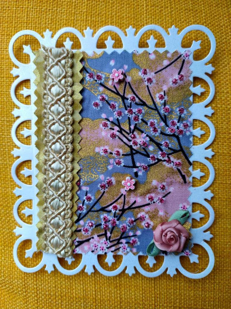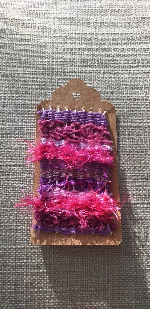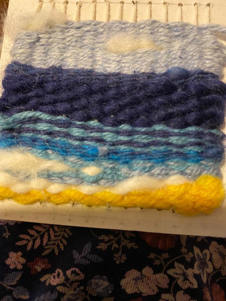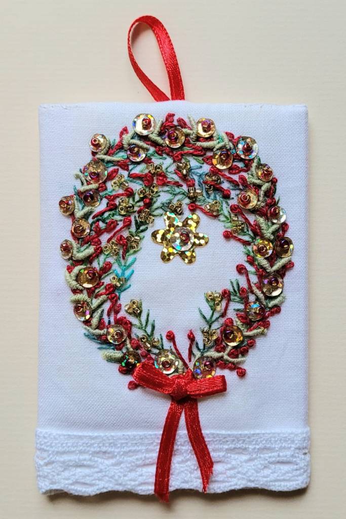 Our 2021 project was based on a challenge set by textile artist Anne Brooke, Sue V coordinated the project for our group. We created a series of mini stitched pieces, one a week for 52 weeks, each with a theme given by Anne Brooke which we attached to a luggage label or similar with the date and a memory of that week written on the reverse of the label.