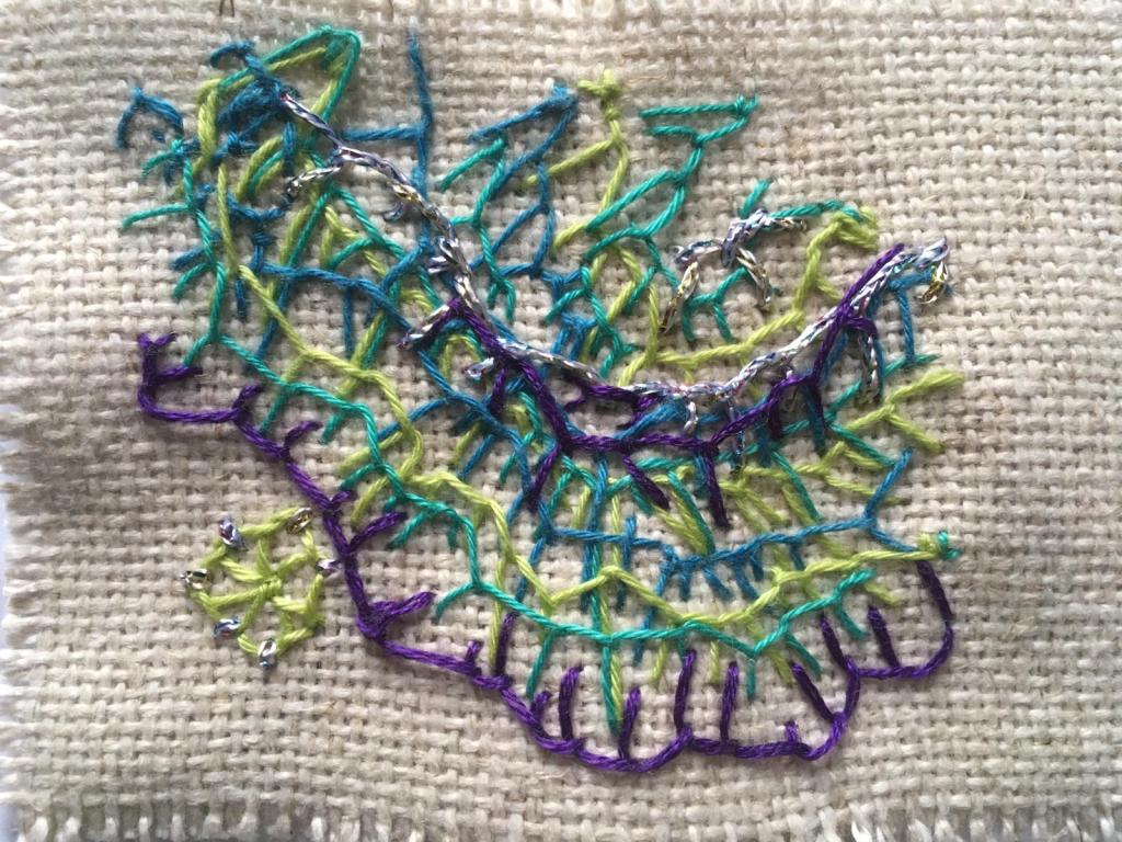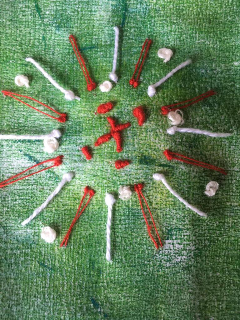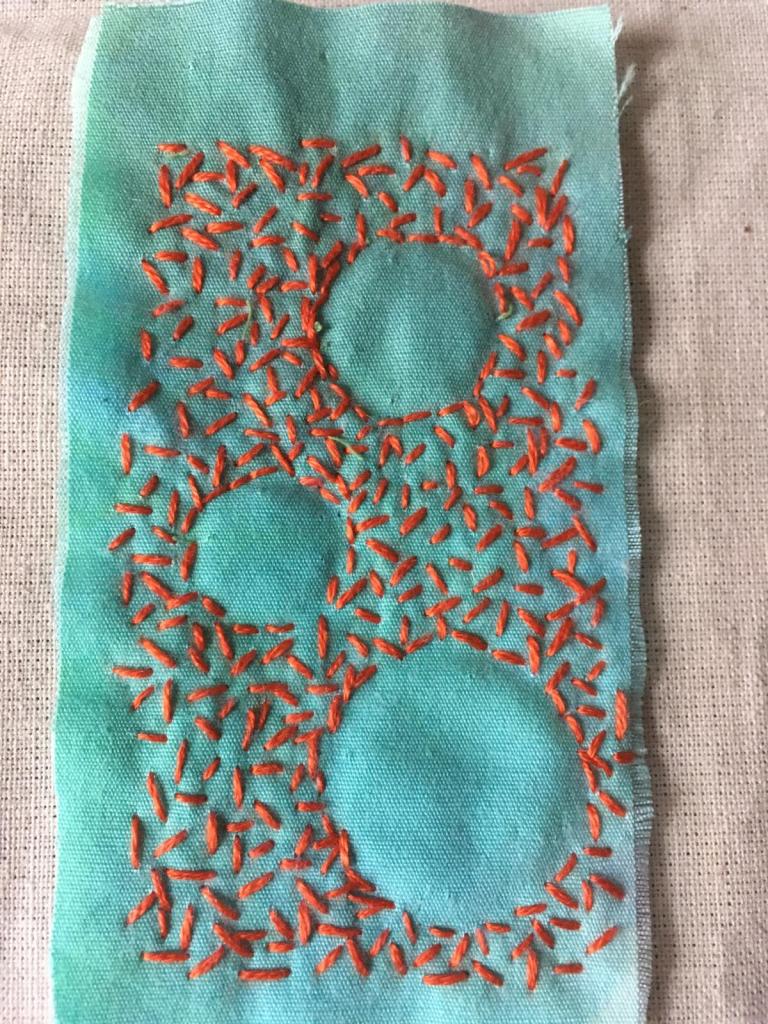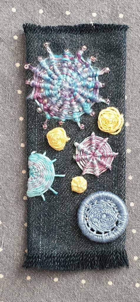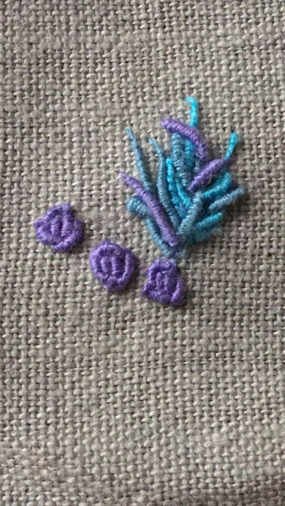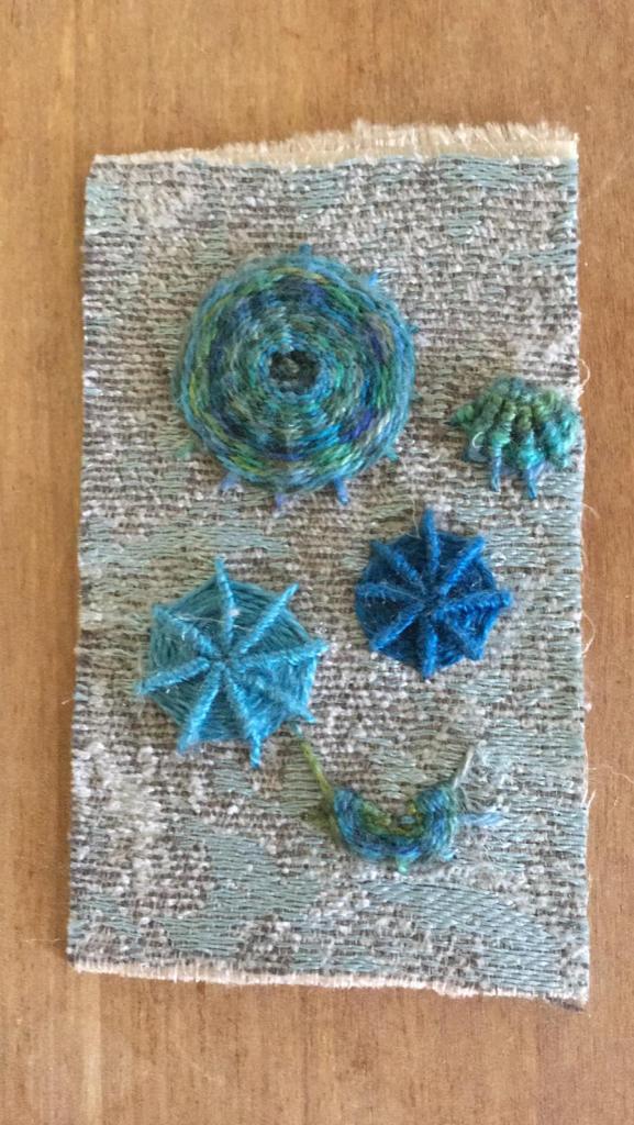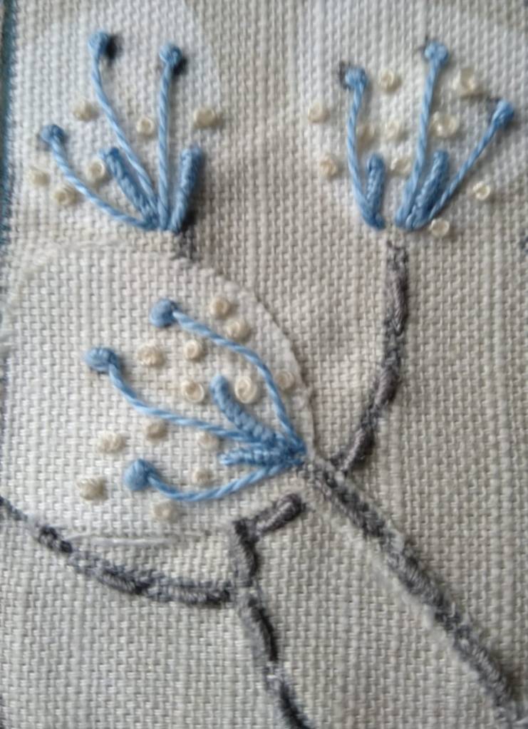 Week 8 the theme is French knots, bullion knots and pistol stitches