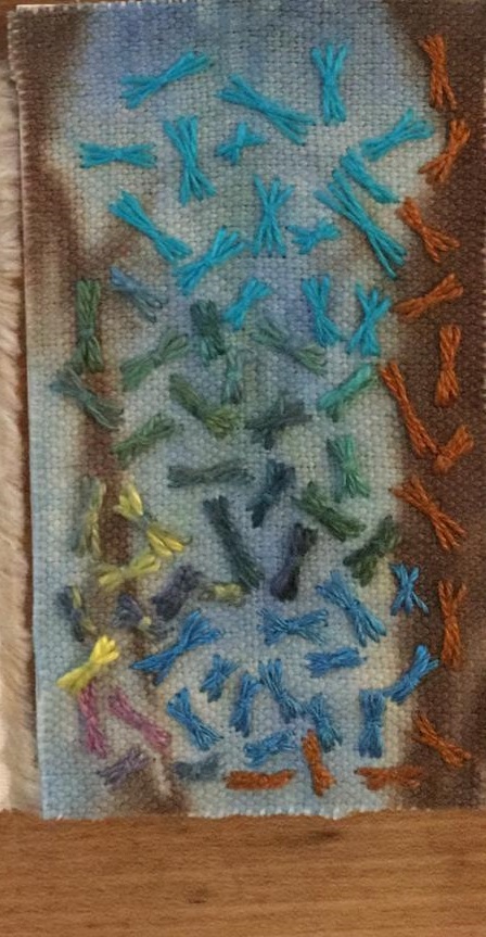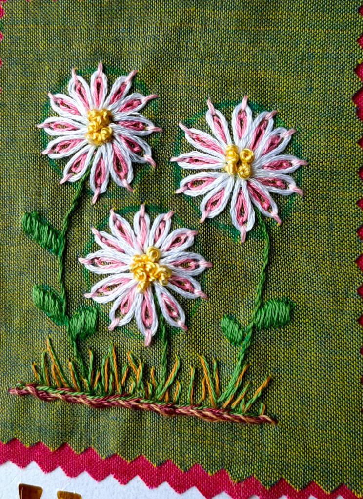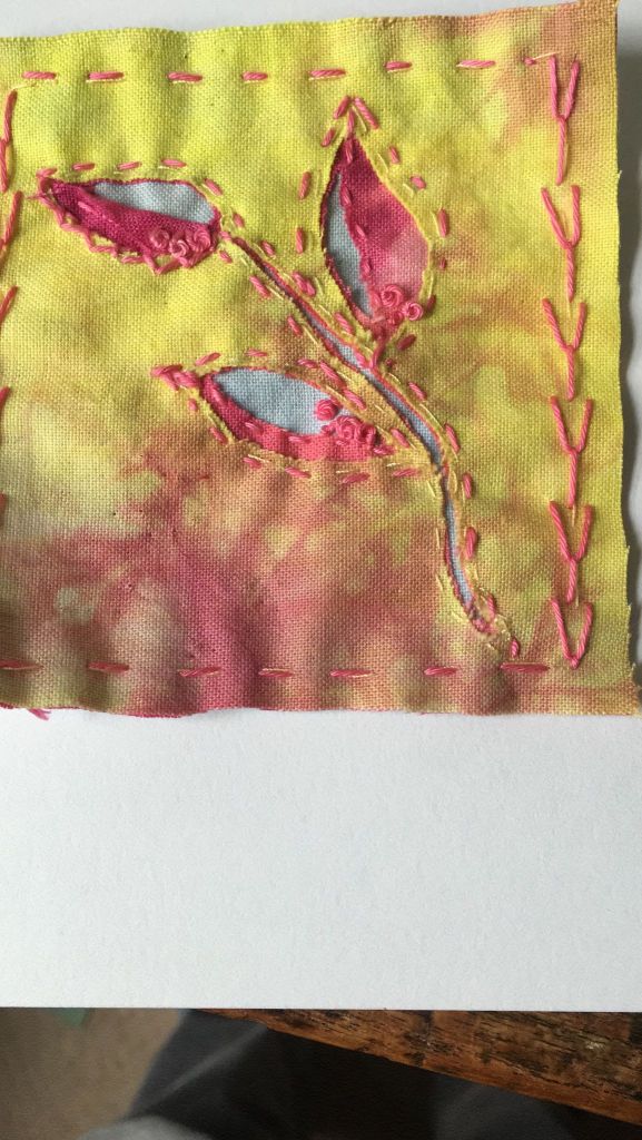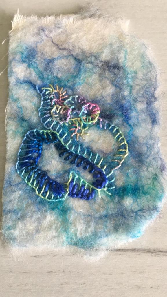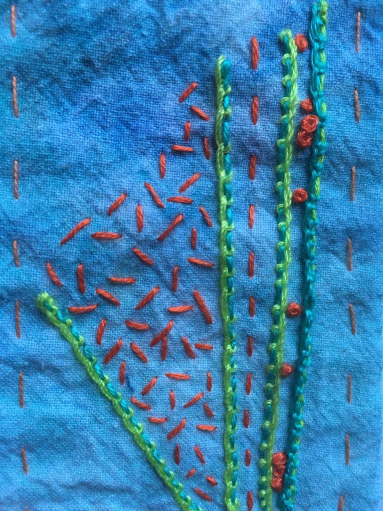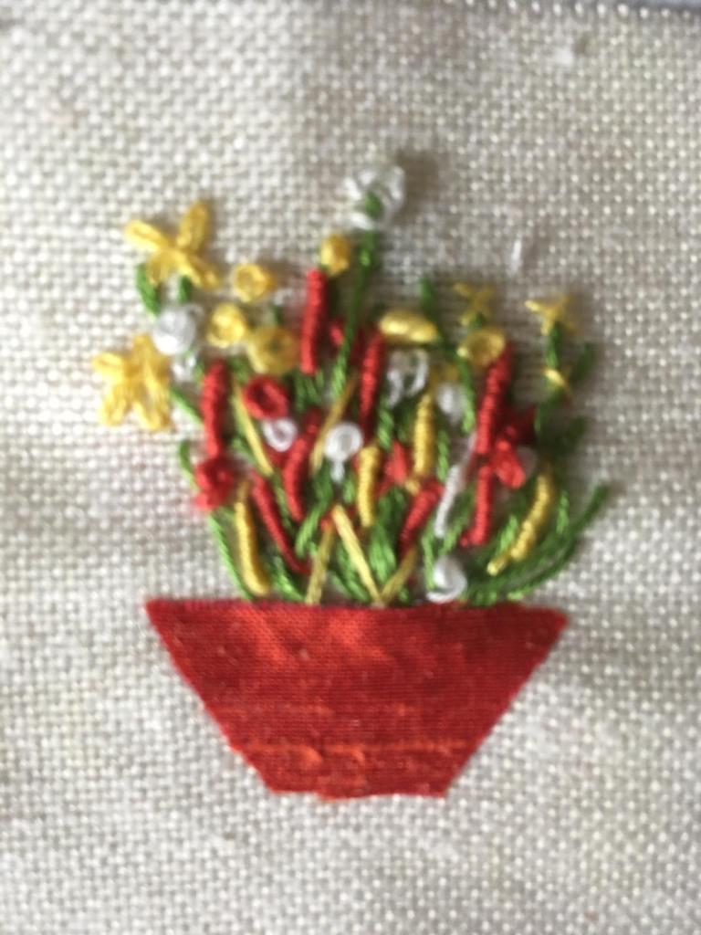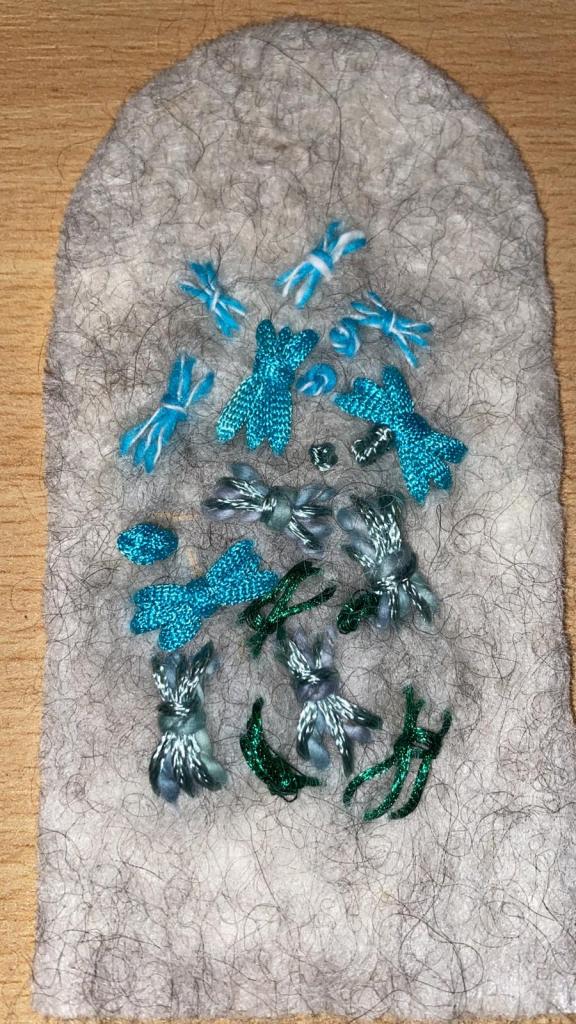 Week 8 the theme is French knots, bullion knots and pistol stitches