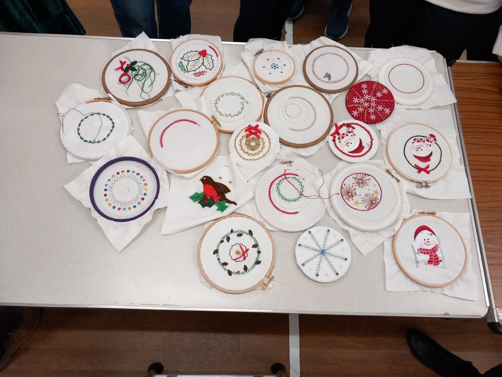 A morning spent stitching or attending Ann and Elaine’s workshop where they demonstrated how to mount our work, many thanks to Ann and Elaine.